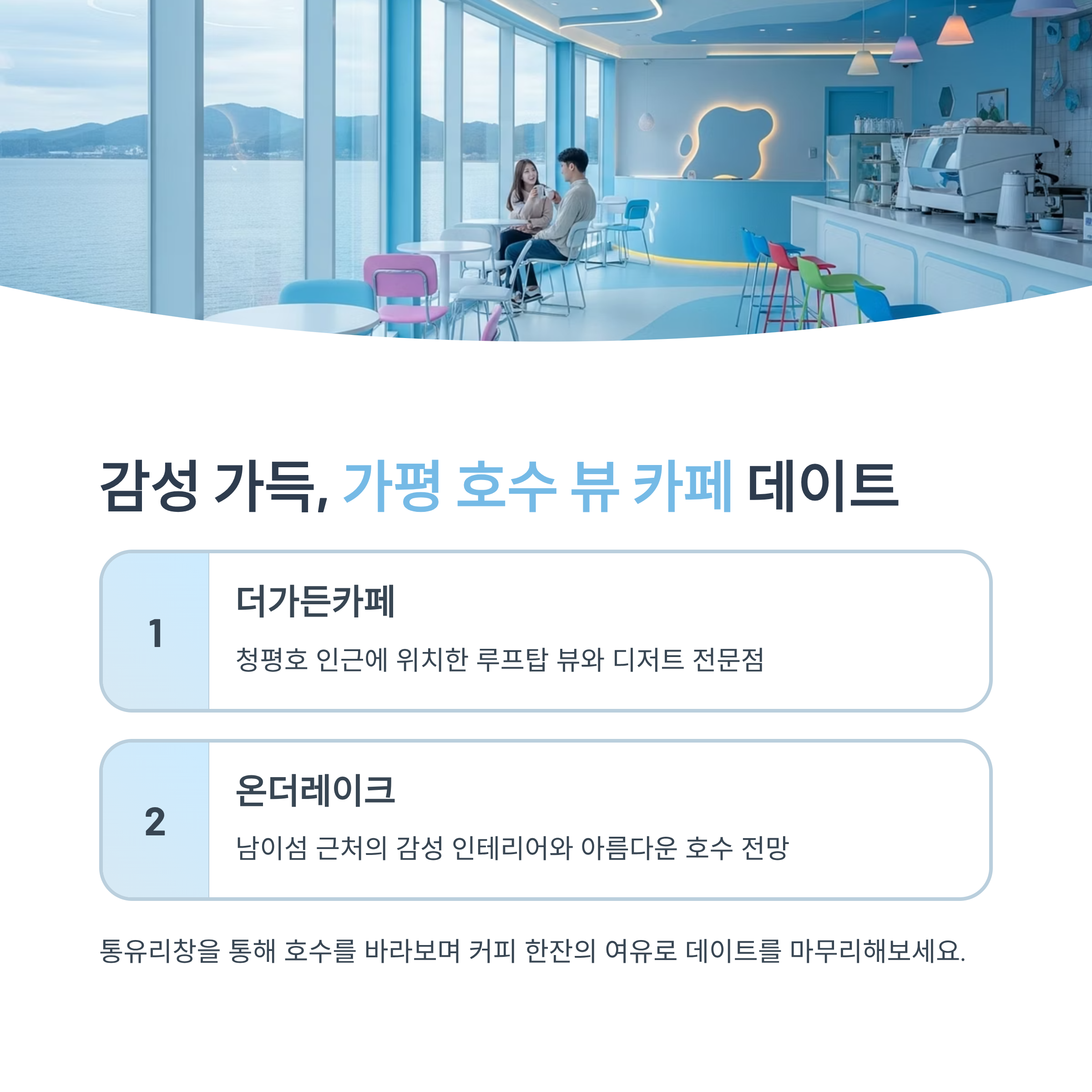 가평은 감성적인 호수 뷰 카페가 많기로 유명합니다.