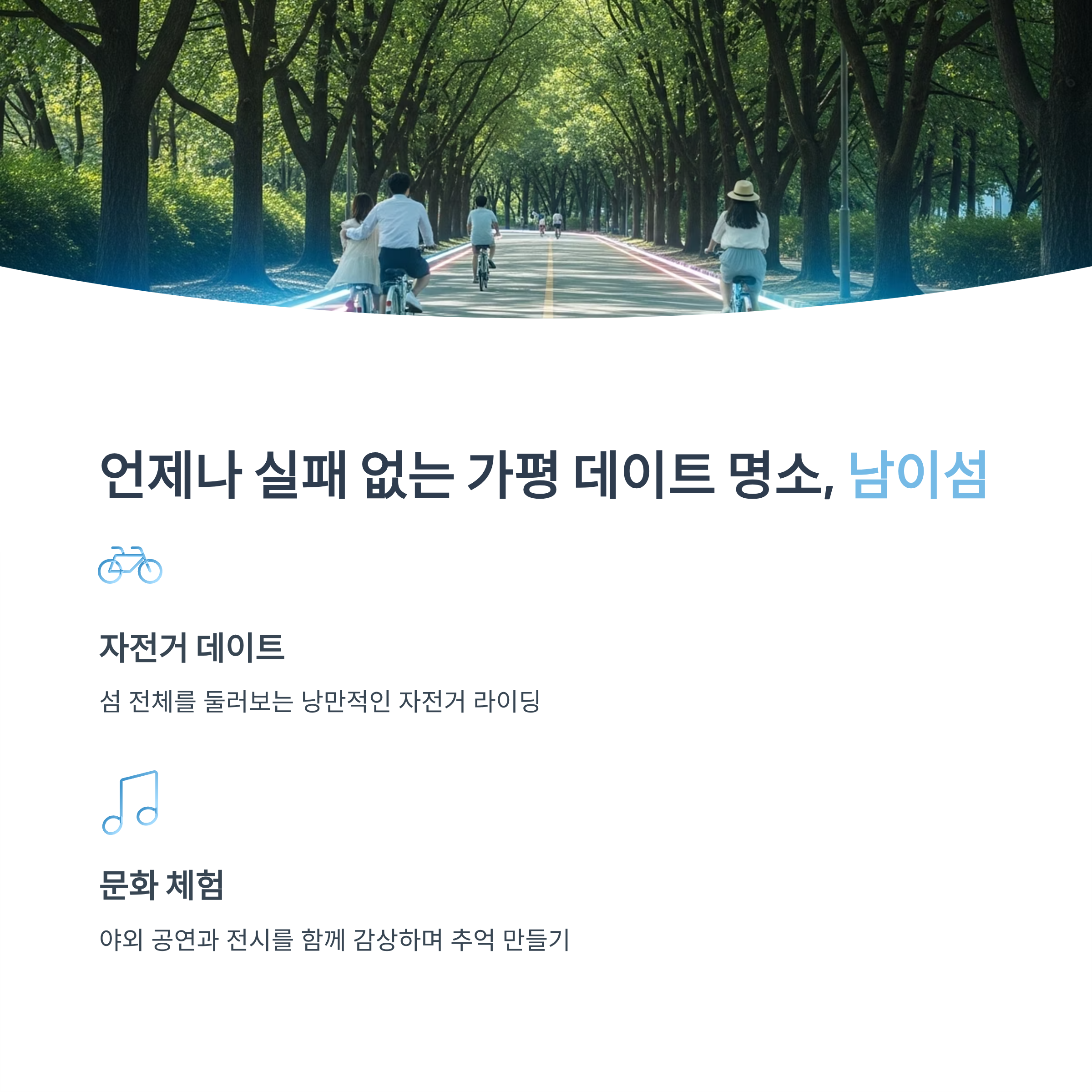 남이섬은 늘 사랑받는 가평의 대표 데이트 장소입니다.
