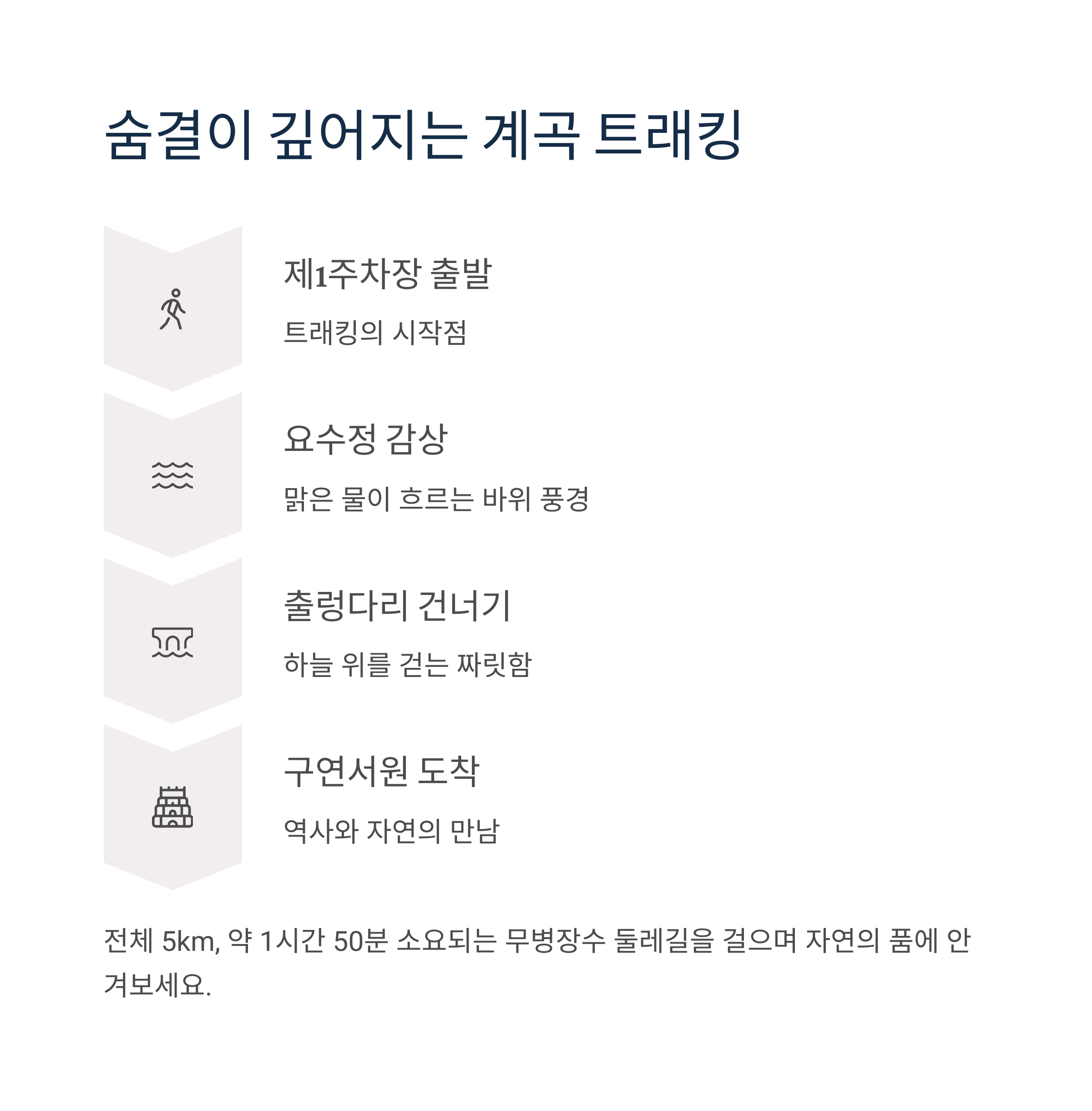 "시원한 물소리와 함께하는 힐링 워킹"을 느껴보세요.