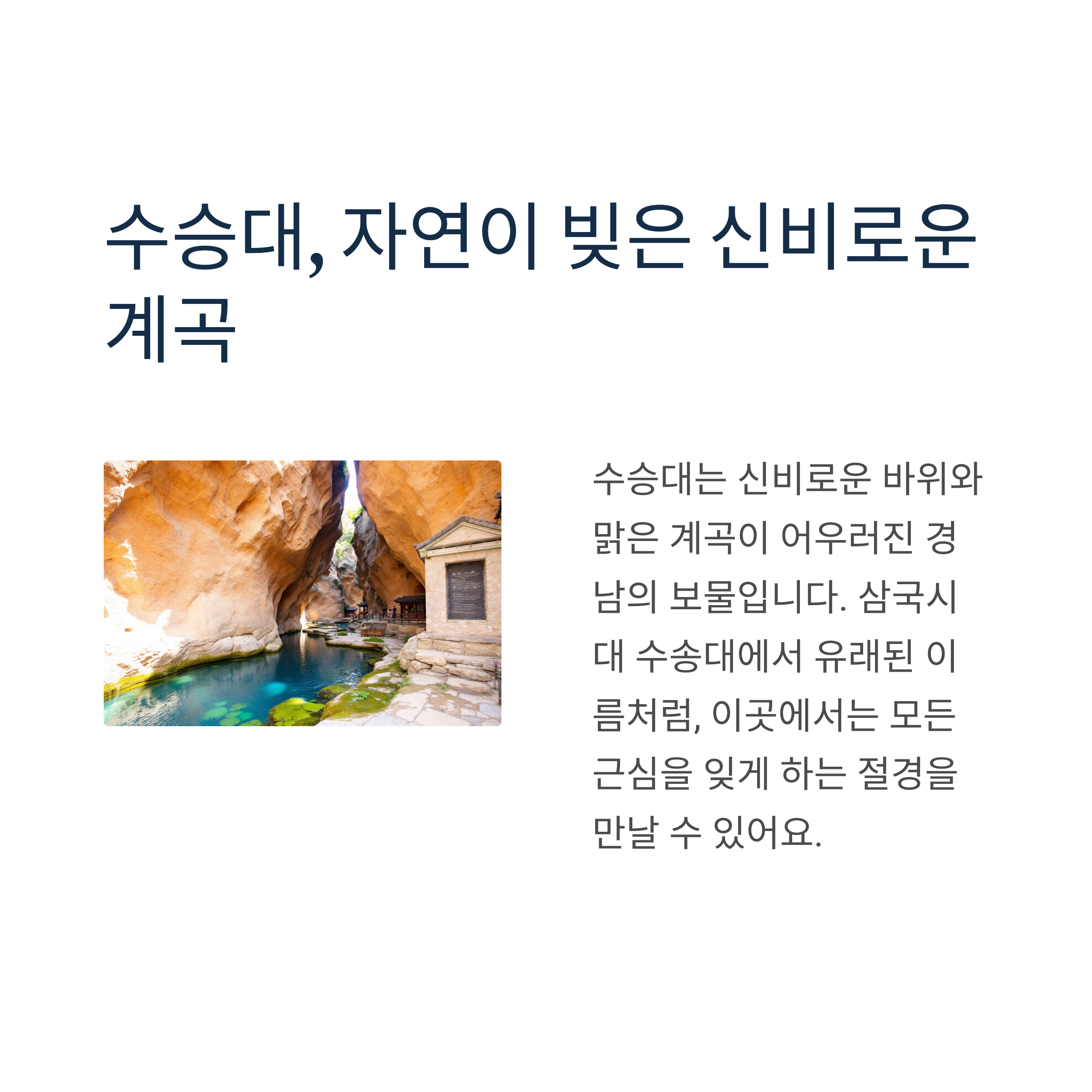 "자연 속 깊은 쉼표"를 찾고 싶다면 수승대가 딱입니다.