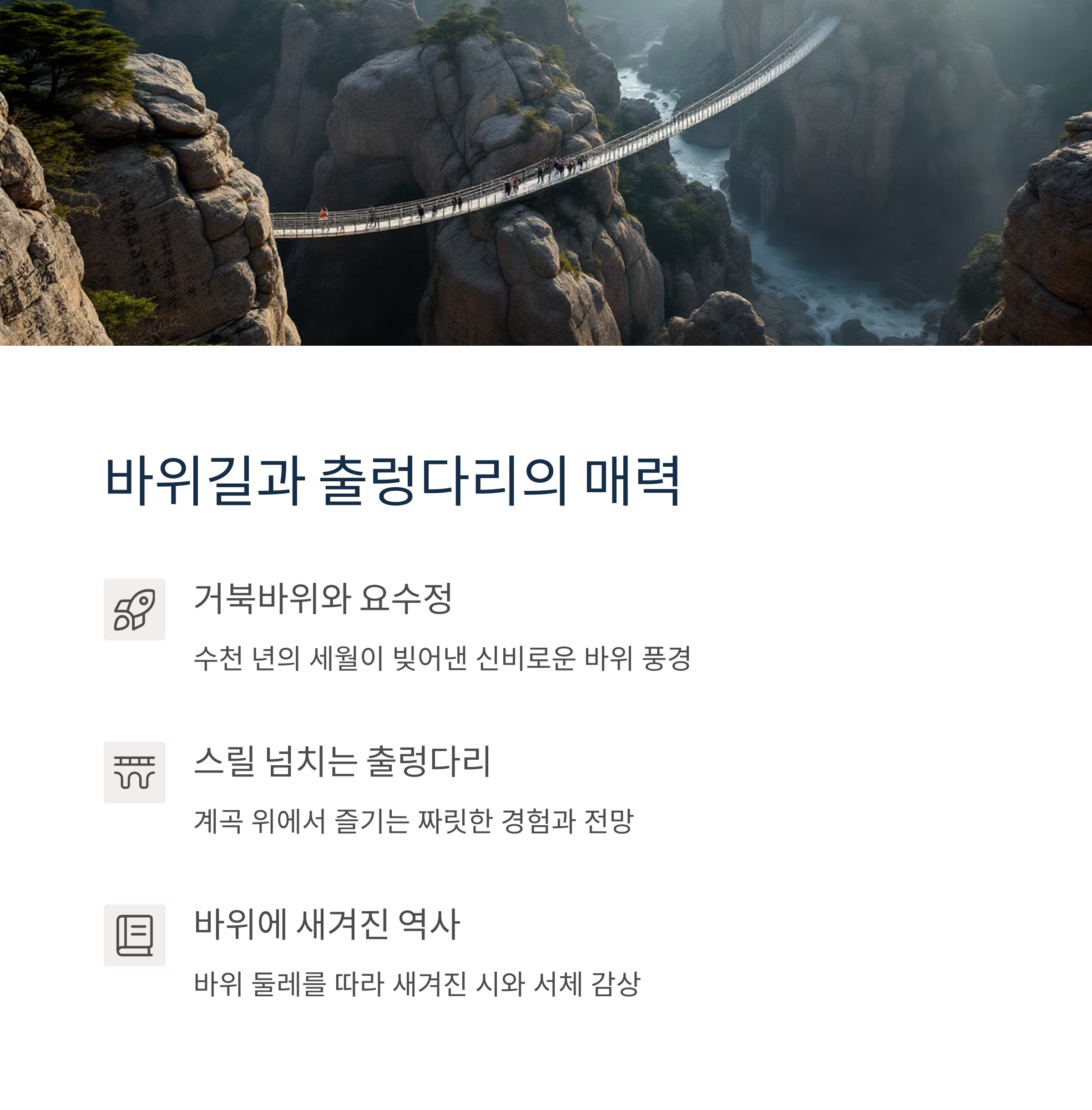 수승대의 대표 명소 - 바위길과 출렁다리의 매력