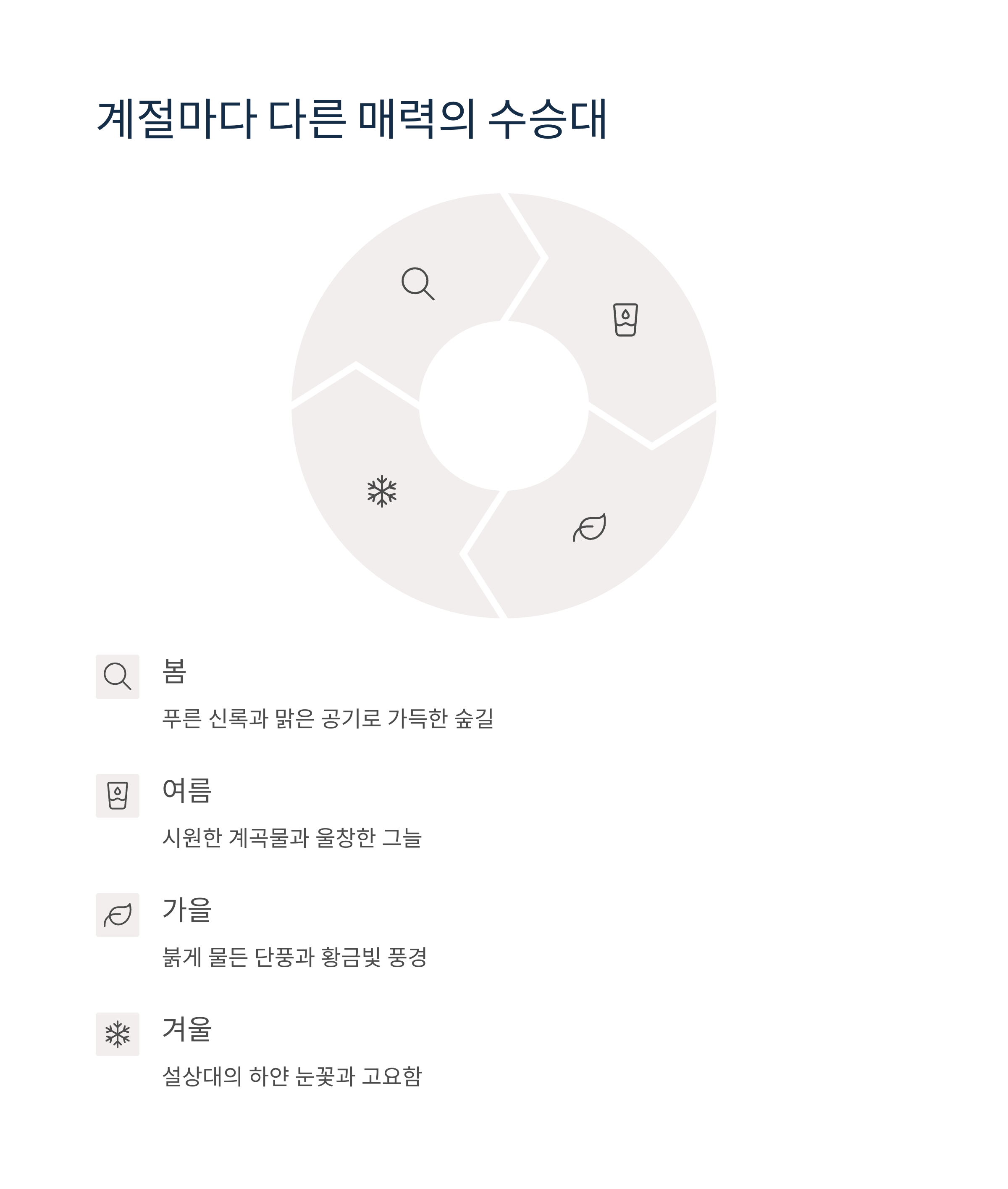 "한 발 한 발, 자연과 가까워지는 기분"을 경험해보세요.