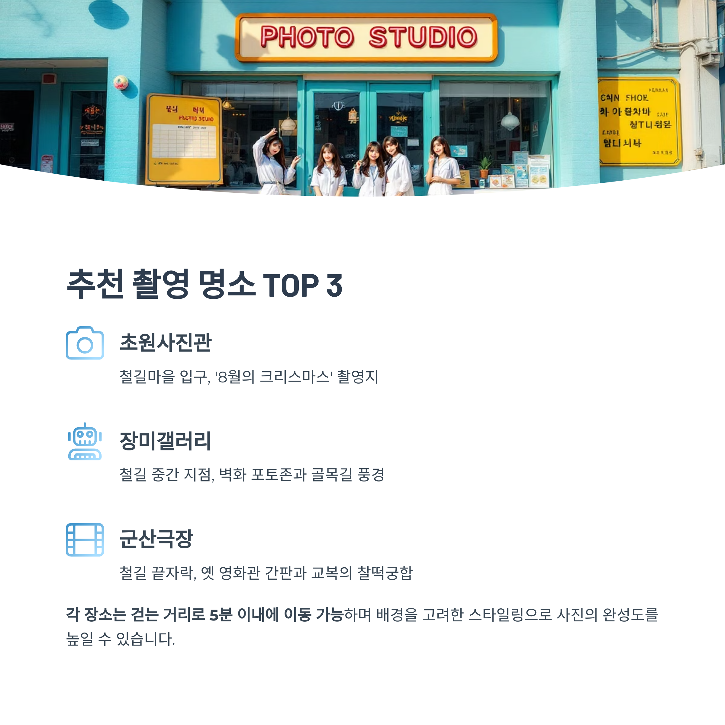 | 초원사진관 | 철길마을 입구 | 영화 '8월의 크리스마스' 촬영지 |