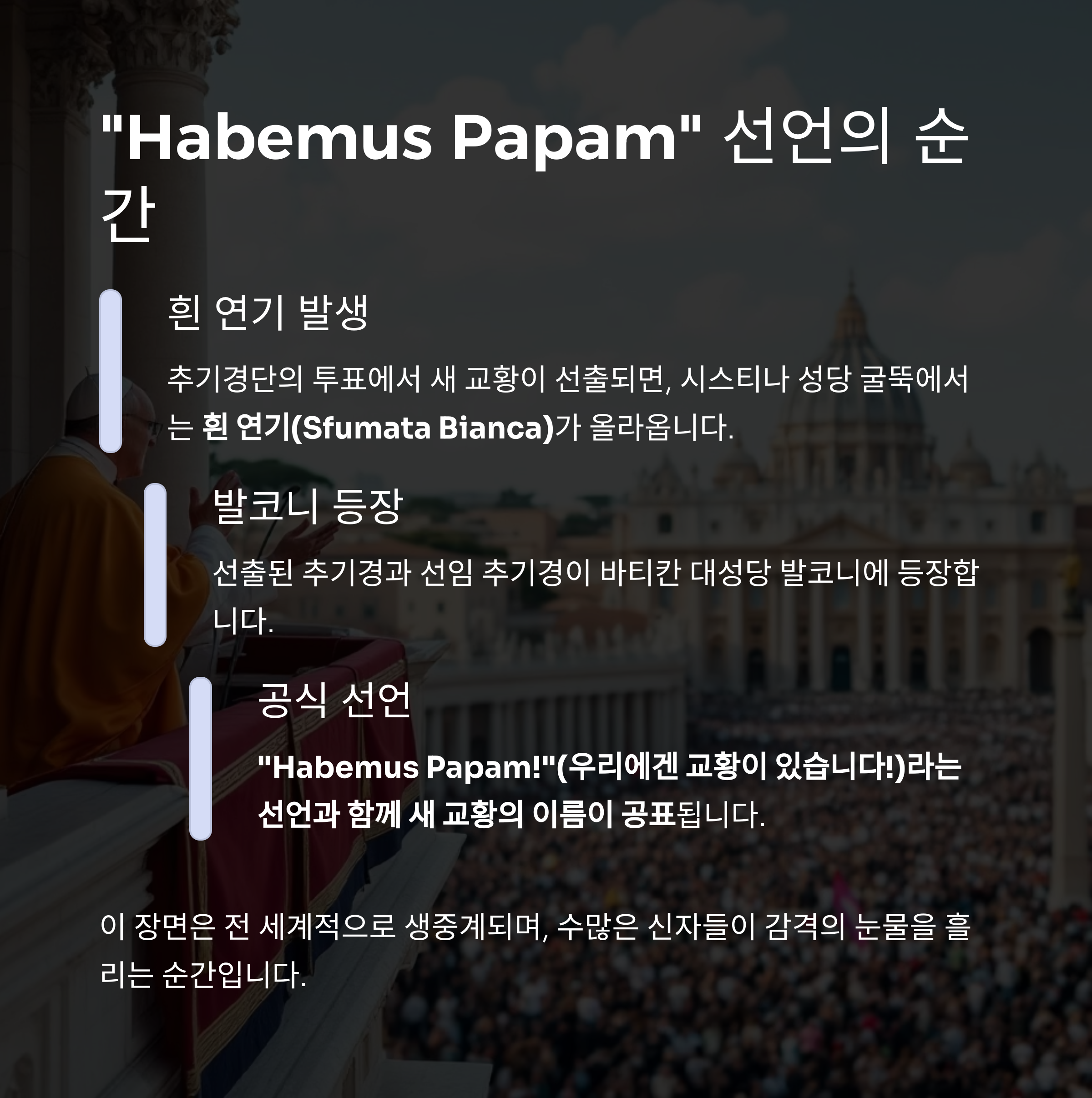 시스티나 성당 굴뚝에서는 **흰 연기(Sfumata Bianca)**가 올라옵니다.