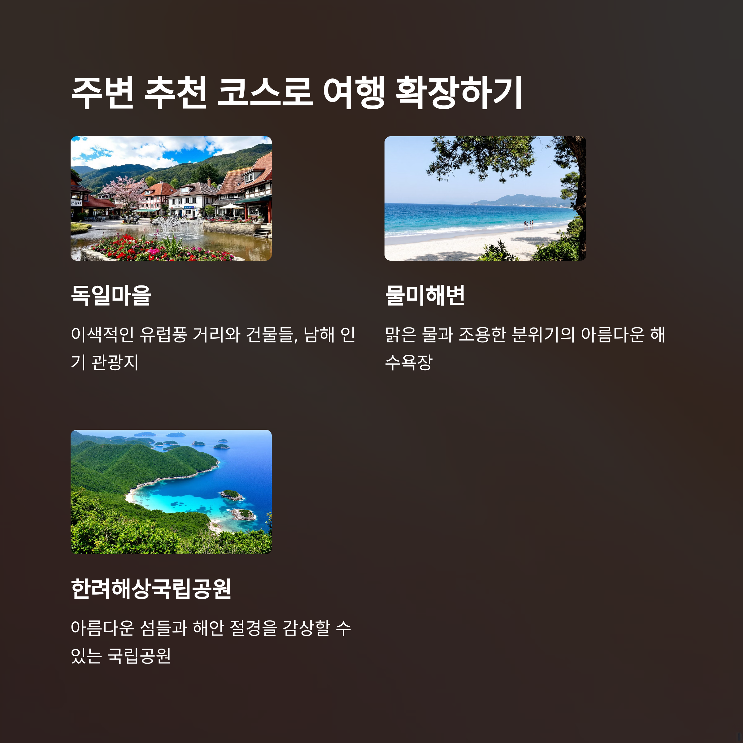 "남해에서 꼭 가봐야 할 숨겨진 힐링 스팟"으로 추천드립니다.