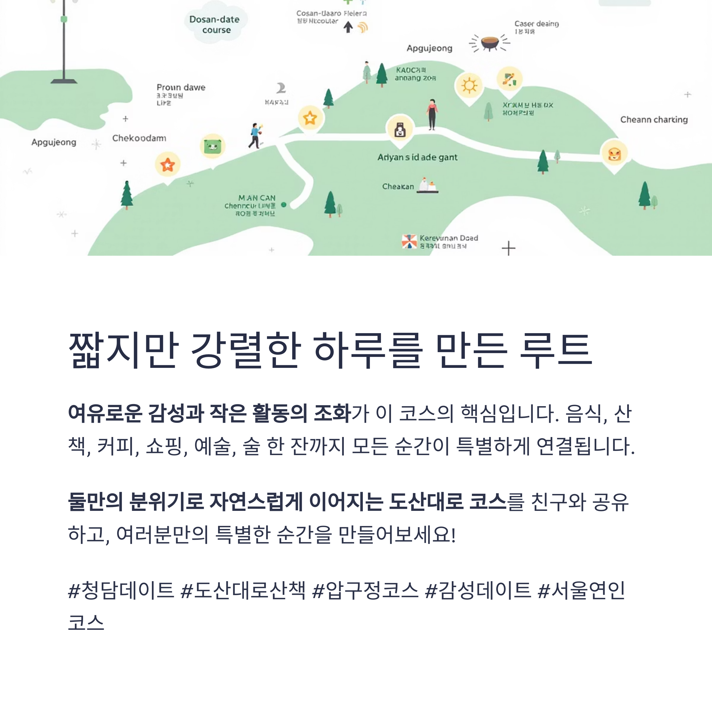 음식, 산책, 커피, 쇼핑, 예술, 술 한 잔까지