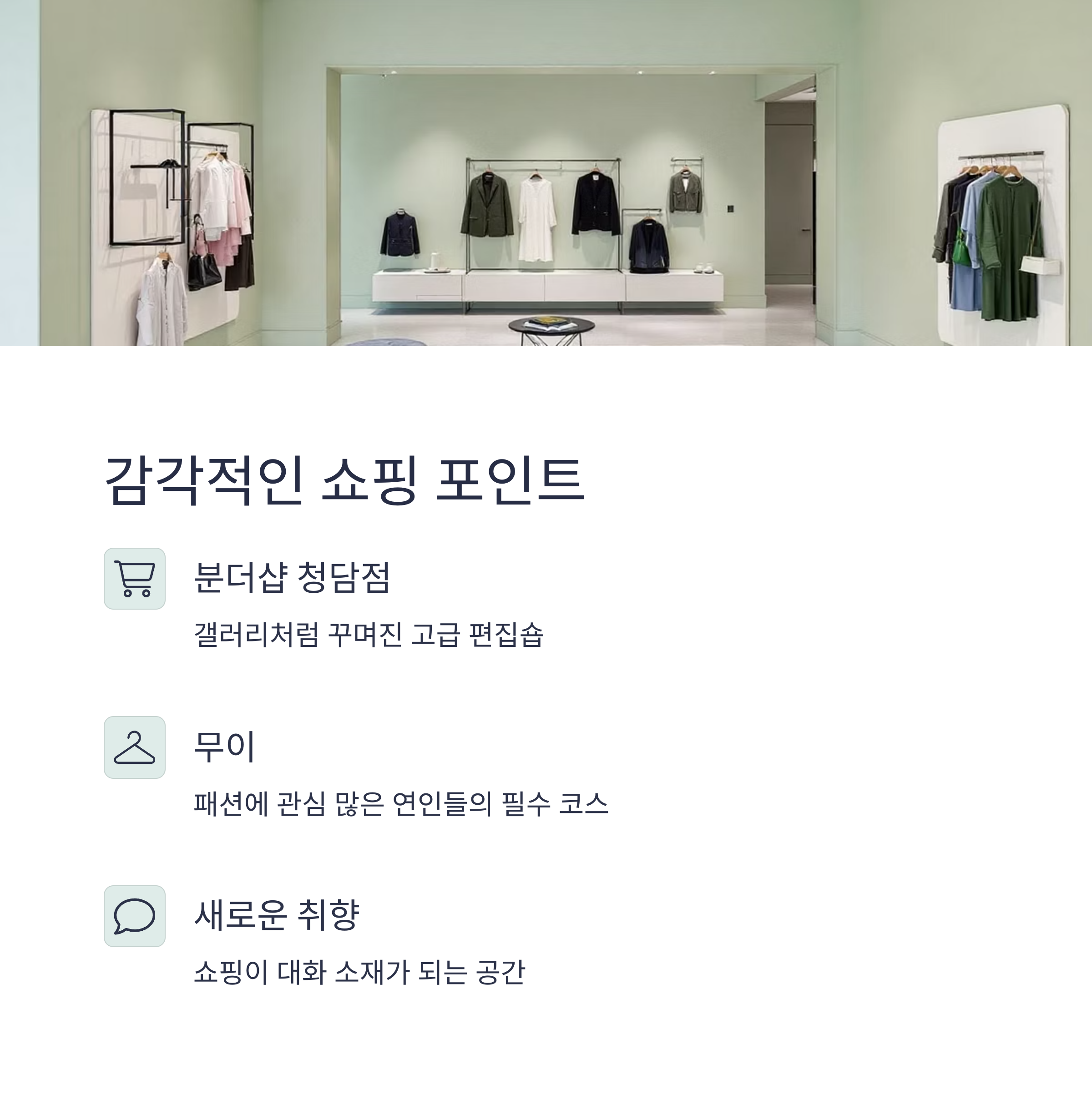 패션에 관심 많은 연인이라면 절대 놓칠 수 없는 공간입니다