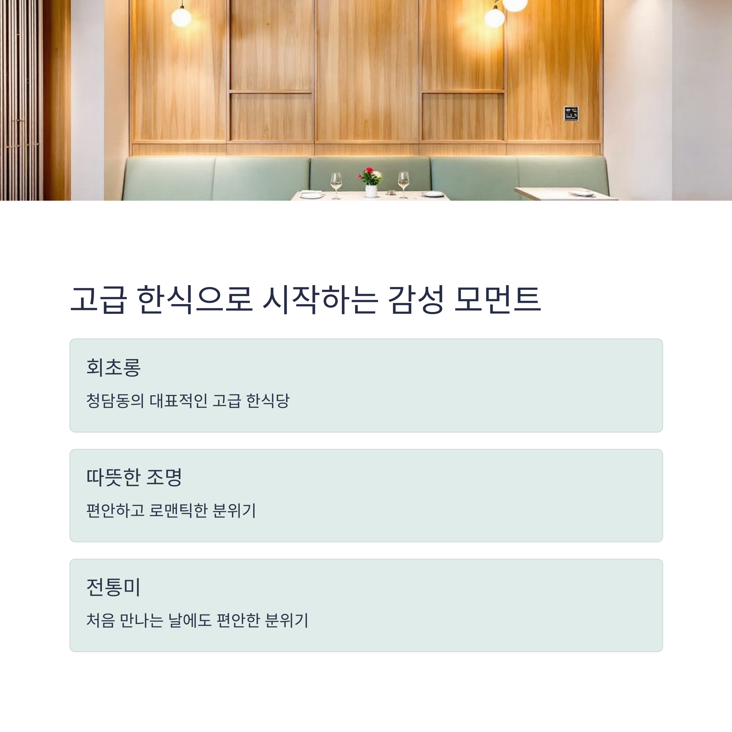 조용한 분위기 속에서 깊이 있는 요리를 즐길 수 있어 데이트 첫 장소로 제격입니다