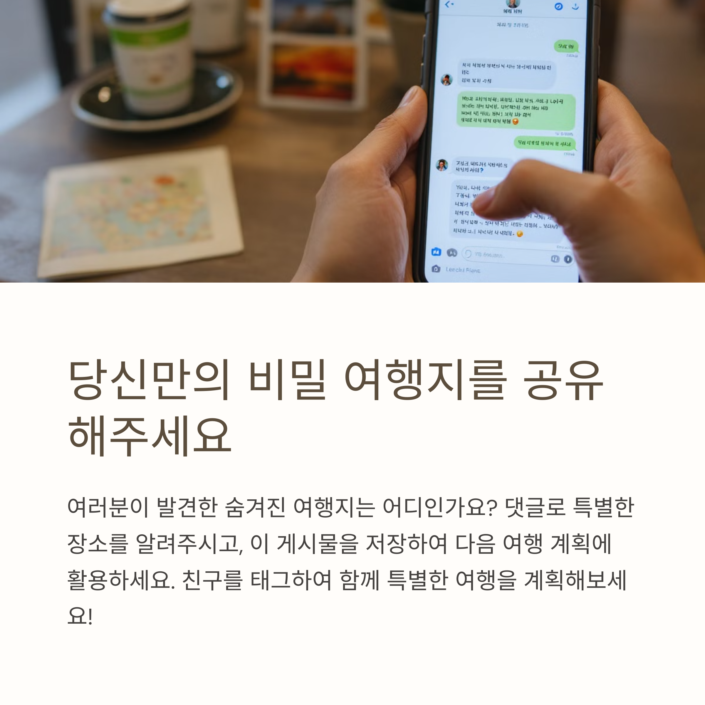 붐비는 관광지 대신 한적한 여행지를 찾는다면 위의 추천 리스트를 참고해 보세요. 자연과 함께 여유로운 시간을 보낼 수 있는 최고의 장소들입니다.