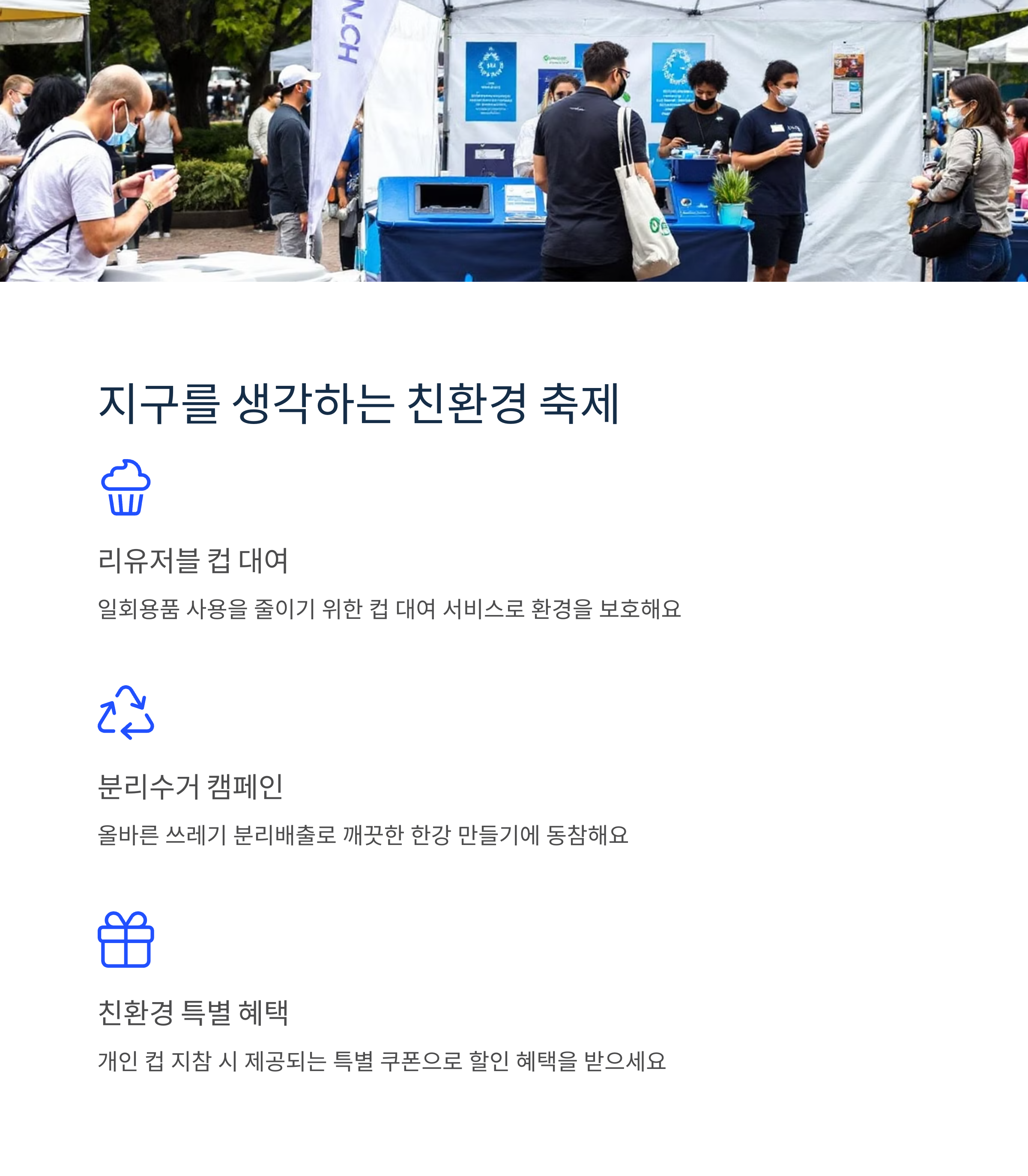 리유저블 컵 대여 서비스와 분리수거 캠페인도