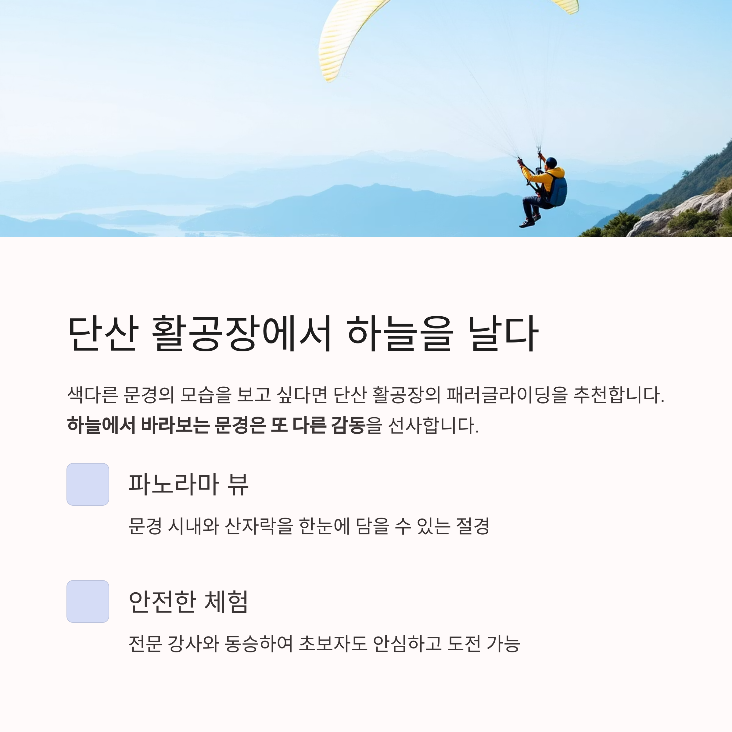 패러글라이딩 체험이 가능한 이곳에서는
