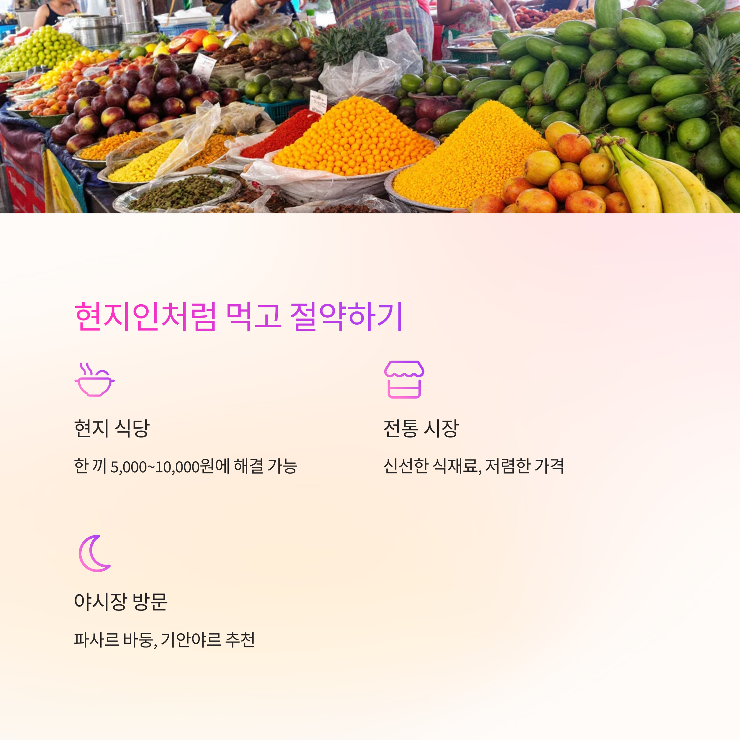 | 생활비 절약 | 식비, 교통비, 현지 마트 활용법 |