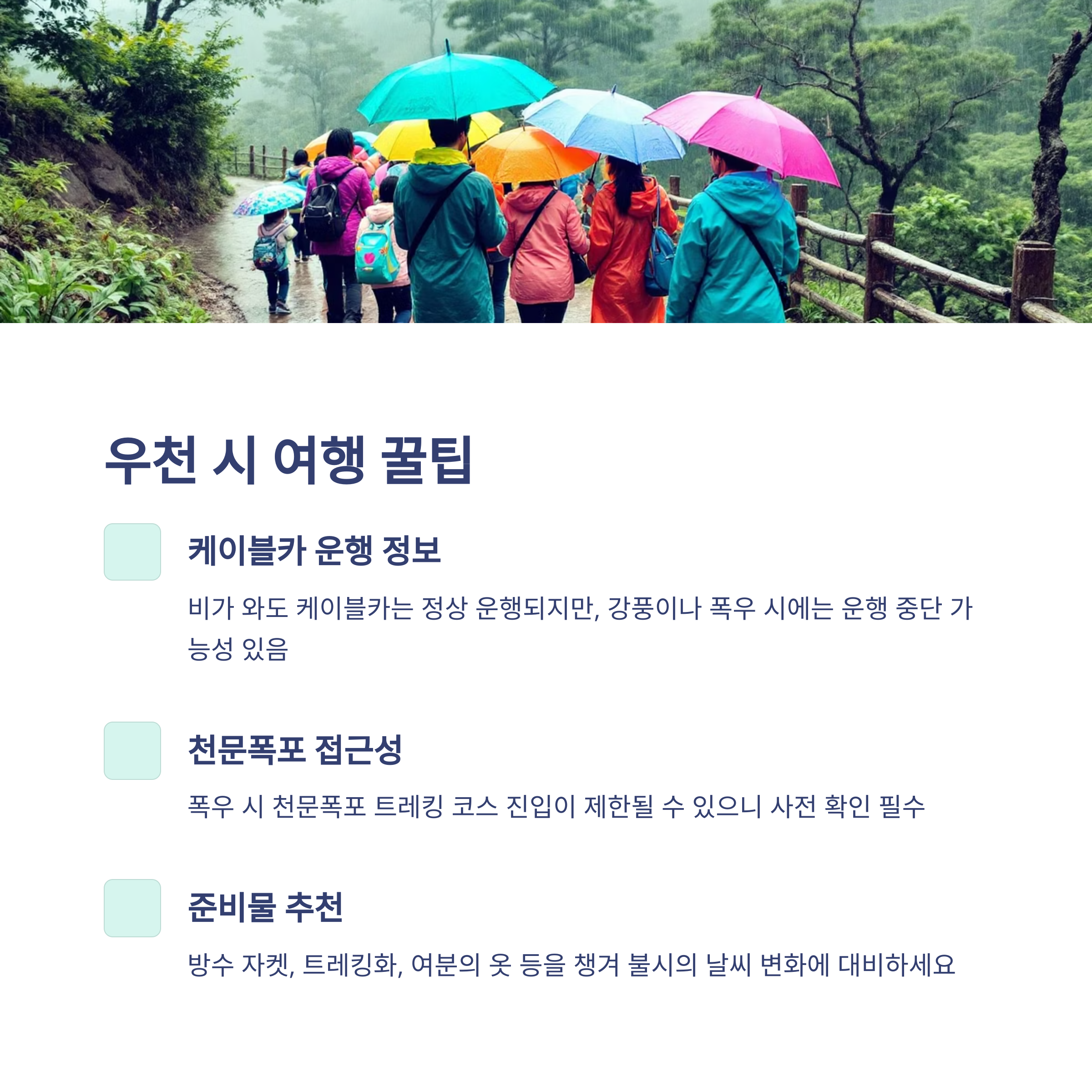 여행 팁: 우천 시에도 즐길 수 있을까?