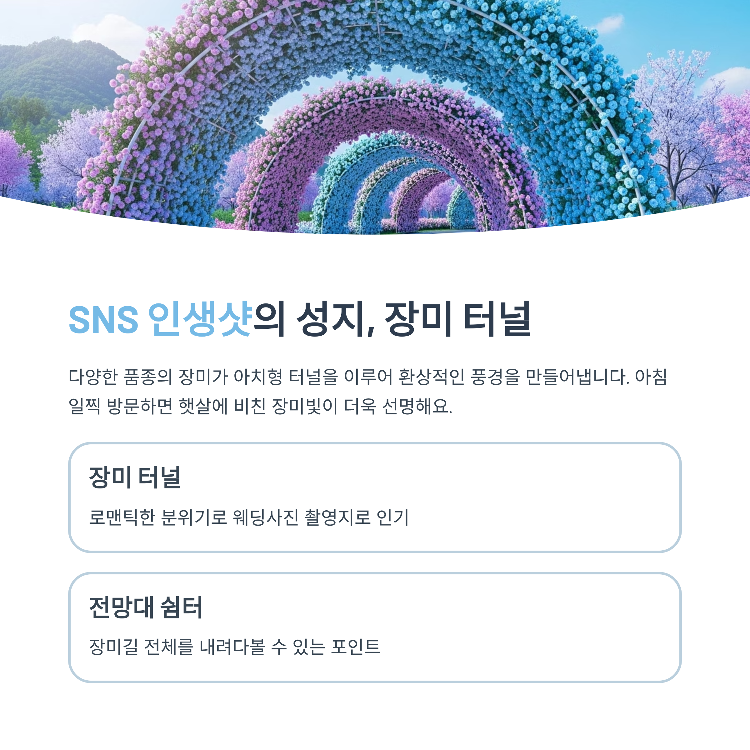 | 장미 터널 | 로맨틱한 분위기, 웨딩사진 촬영지로 인기 |