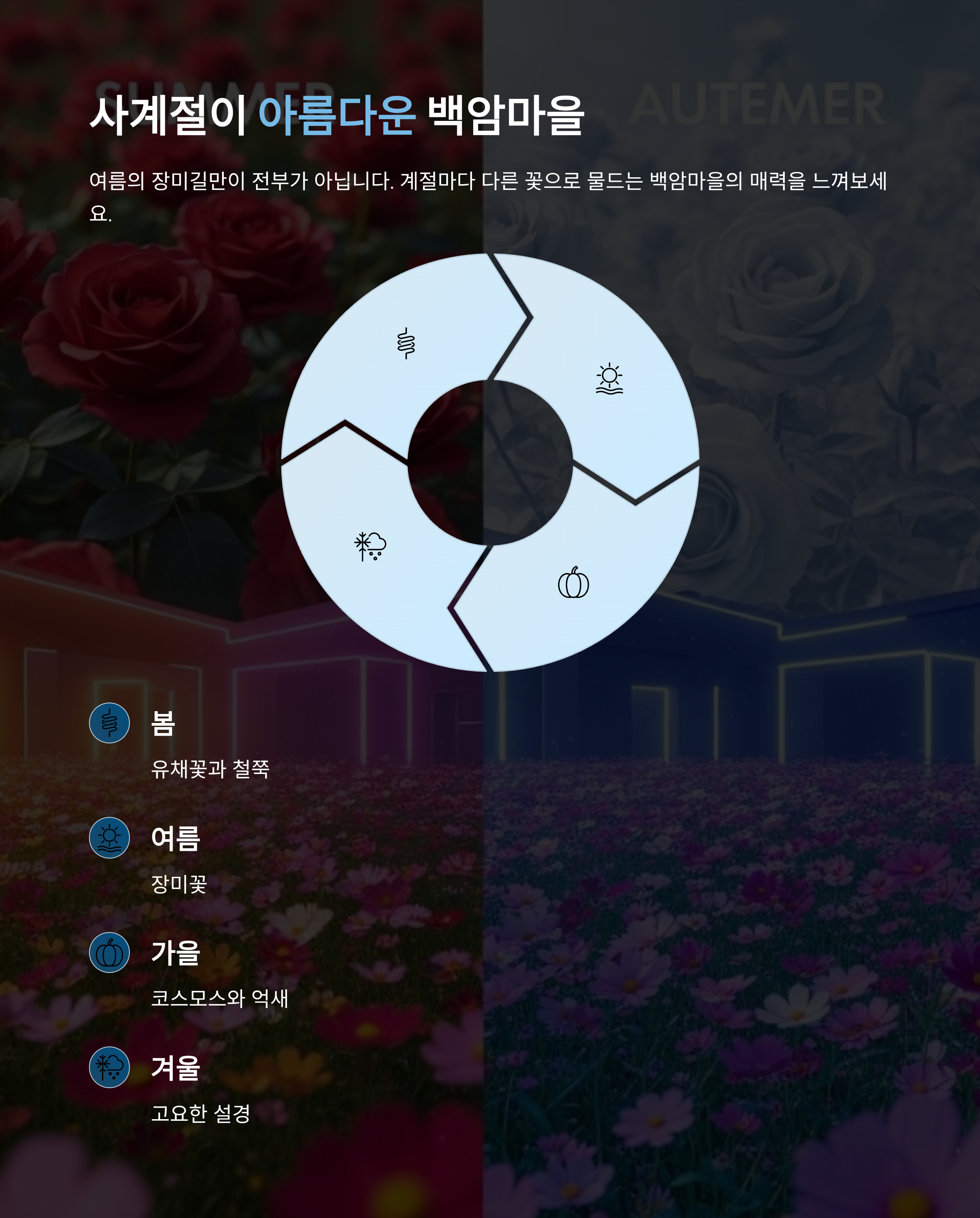 여름의 장미길이 유명하지만 백암마을은 계절마다