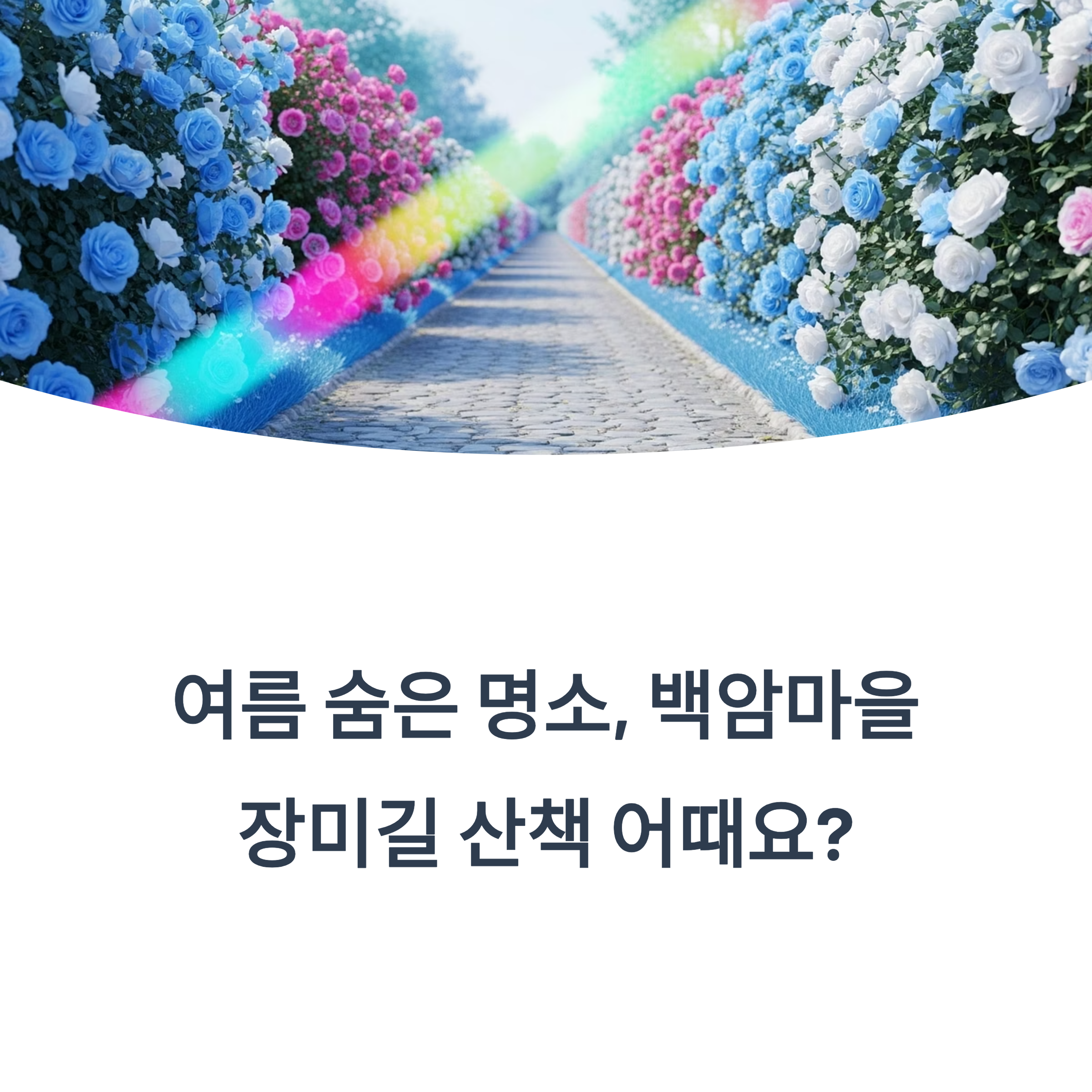 백암마을 장미길은 화려한 여름 장미가 만발한 풍경 속에서
