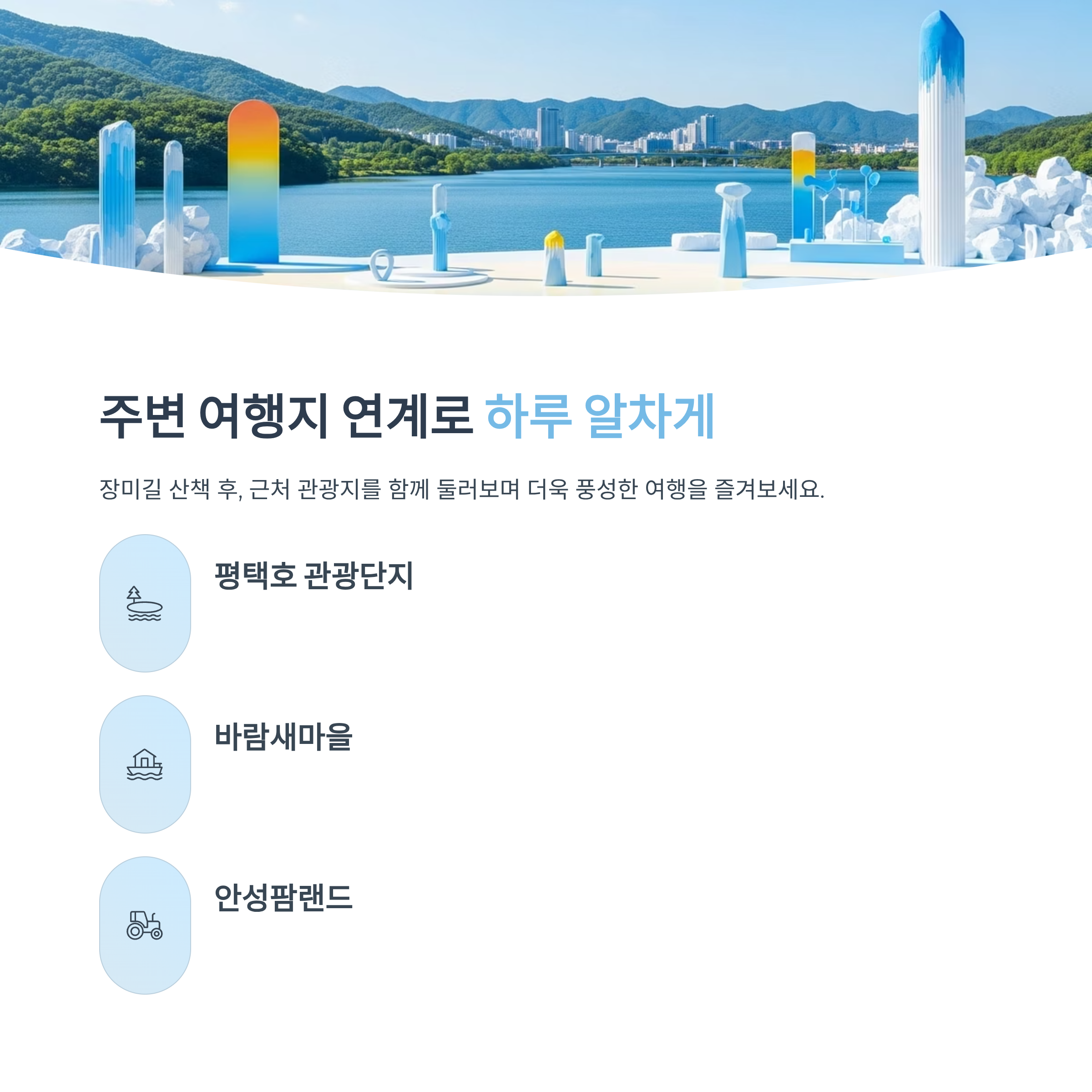 안성팜랜드 등 당일치기 코스로 연계 가능한 관광지가 다양합니다.