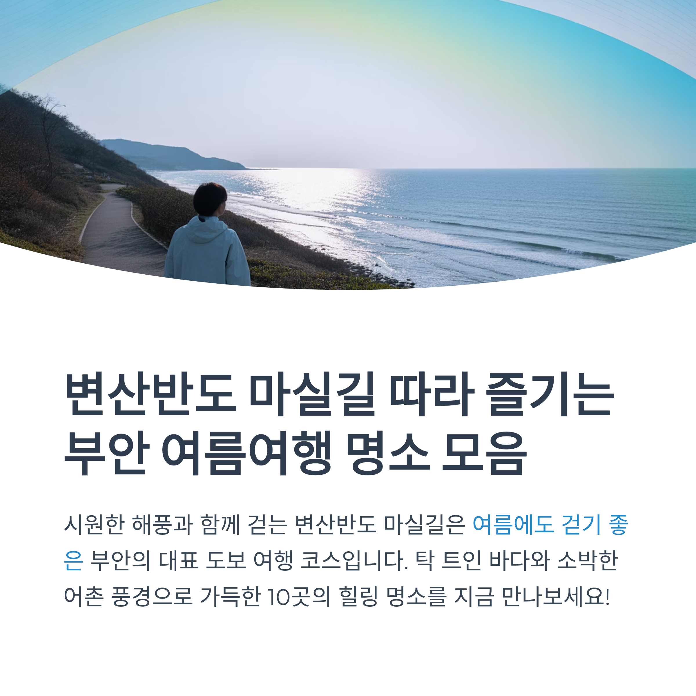 변산반도의 마실길은 여름철에도 바닷바람이 시원하게 불어 걷기 좋은 부안의 대표적인 도보 여행 코스입니다. 해안선을 따라 이어진 길 위에서 탁 트인 바다와 소박한 어촌 풍경을 동시에 만날 수 있어 휴식과 힐링을 원하는 분들께 특히 추천드립니다. 이번 글에서는 변산반도 마실길과 주변의 여름 여행 명소를 함께 소개해드리겠습니다.