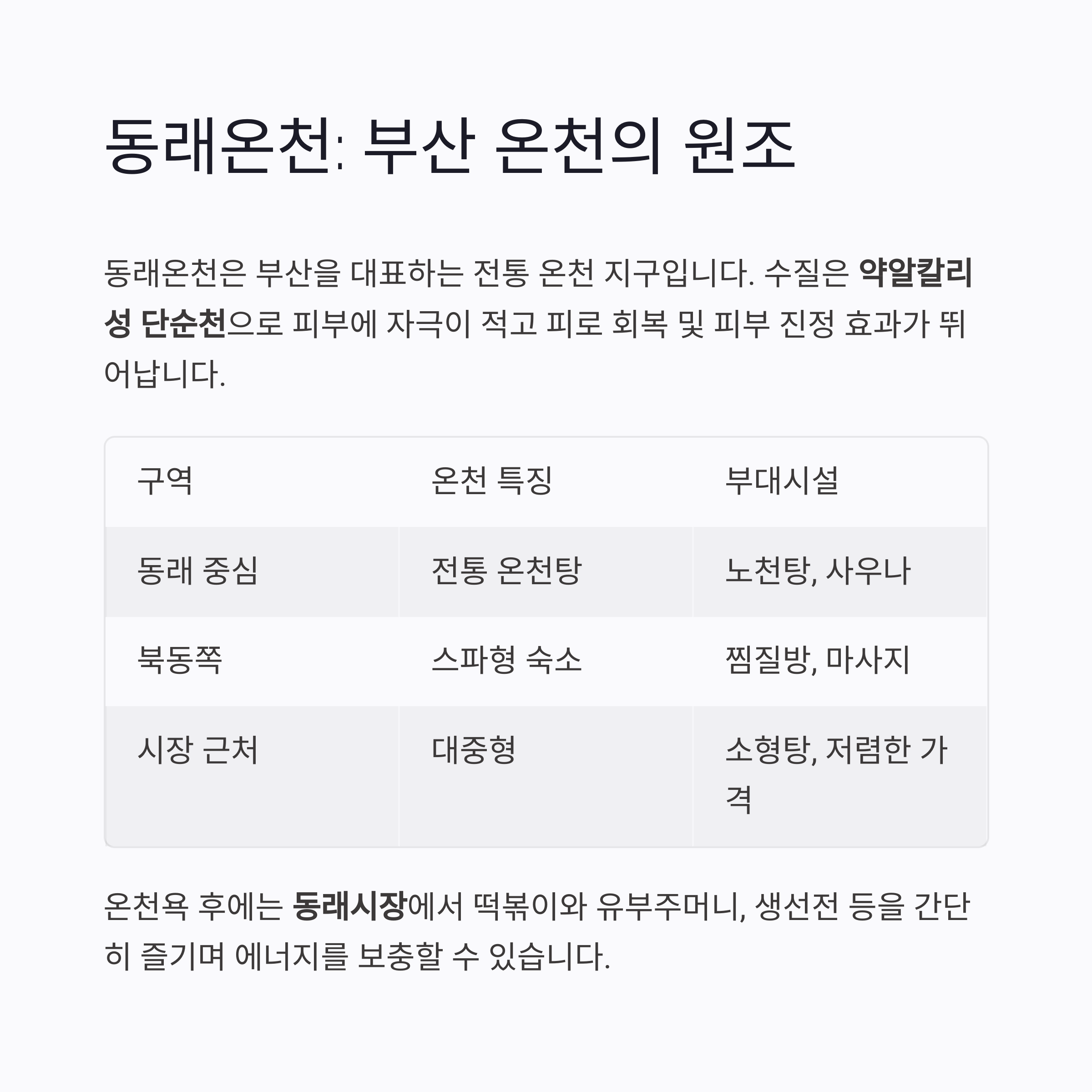 동래온천은 피부와 건강에 좋은 전통 온천입니다.