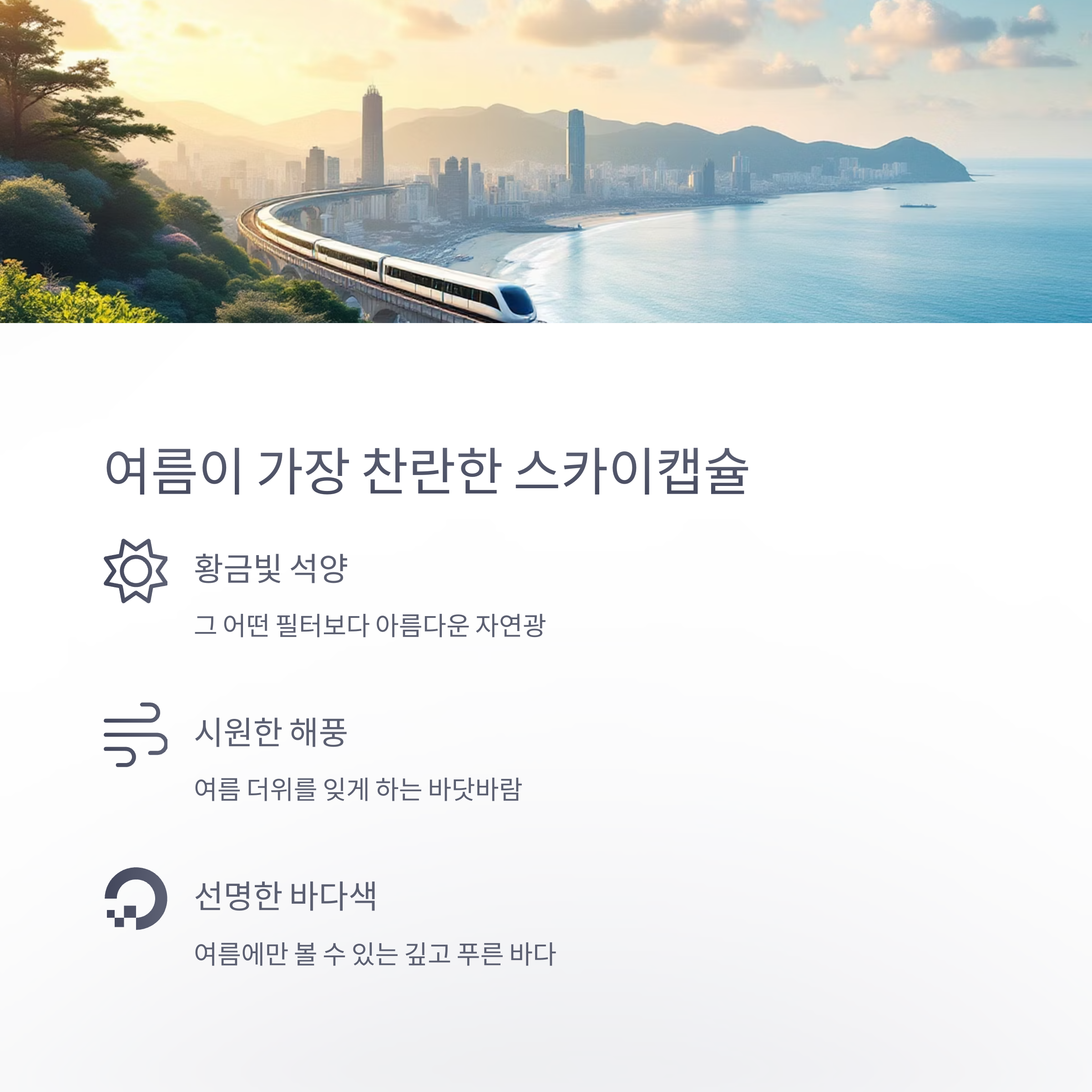 | 스카이캡슐 내부 | 창 너머로 해운대 전경 배경 활용 |