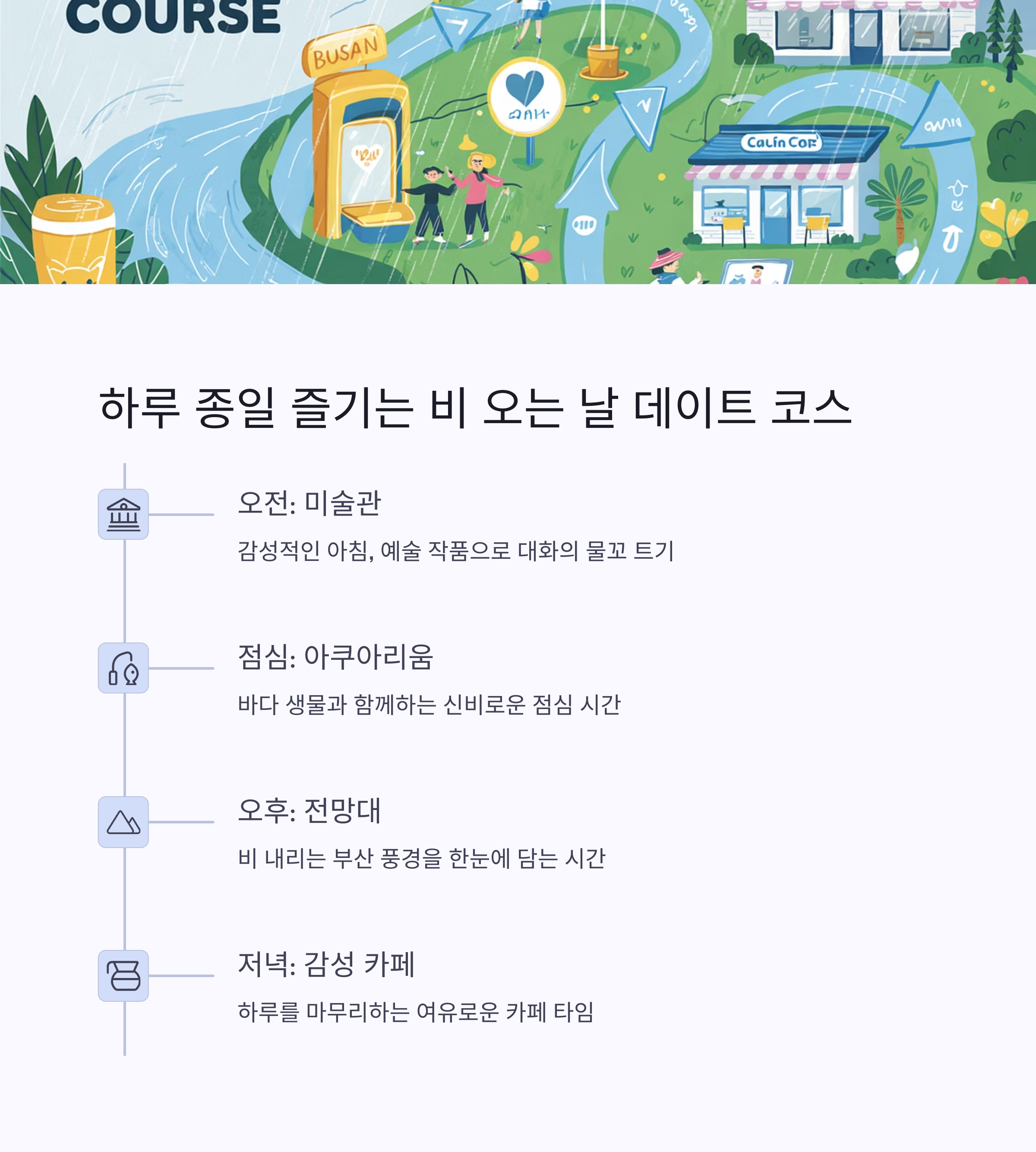 "비 오는 날에도 지루할 틈 없는 완벽한 데이트 코스입니다"
