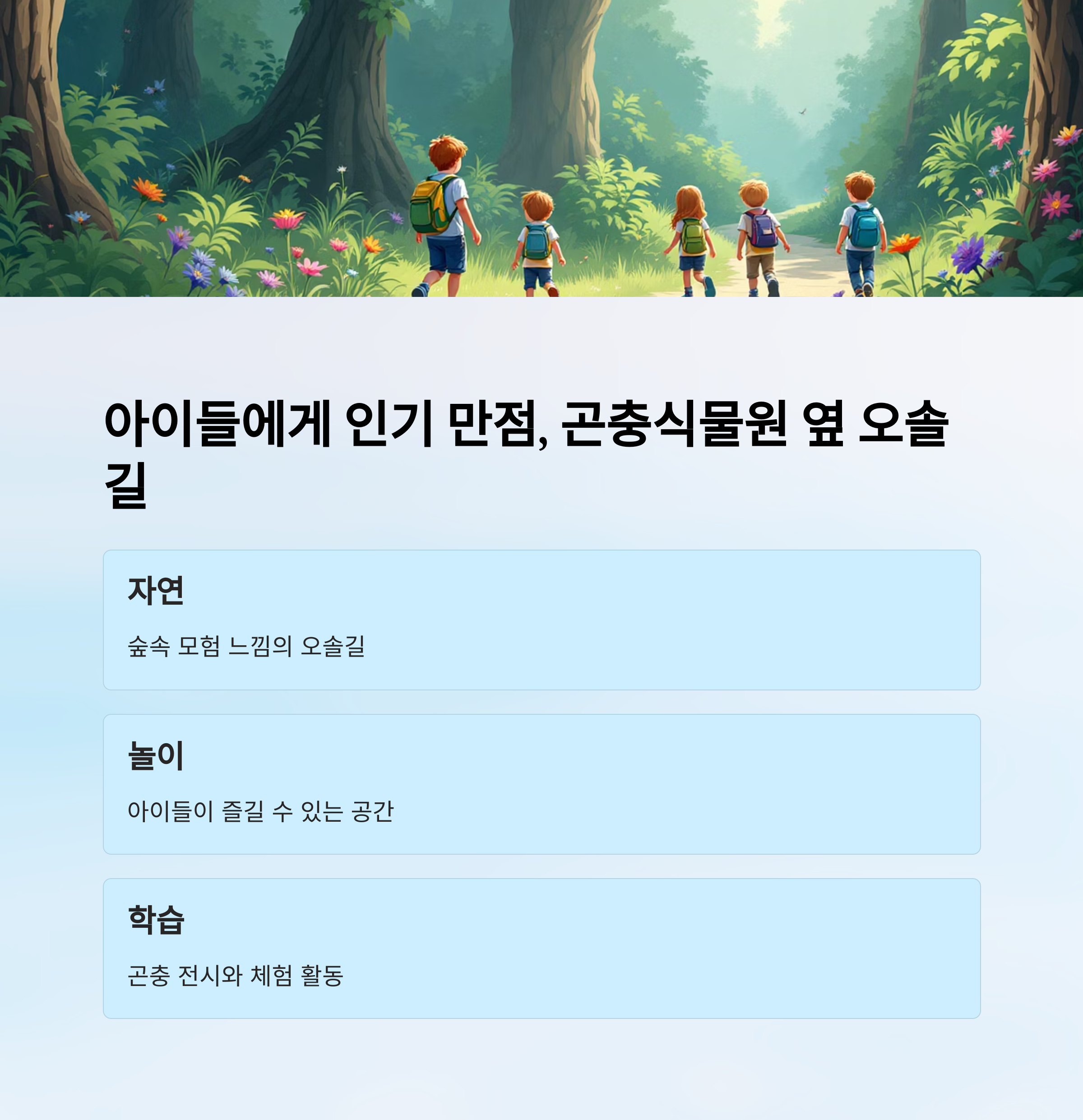 아이들과 함께하기 좋은 공간부터 조용히 걷기 좋은 산책길까지