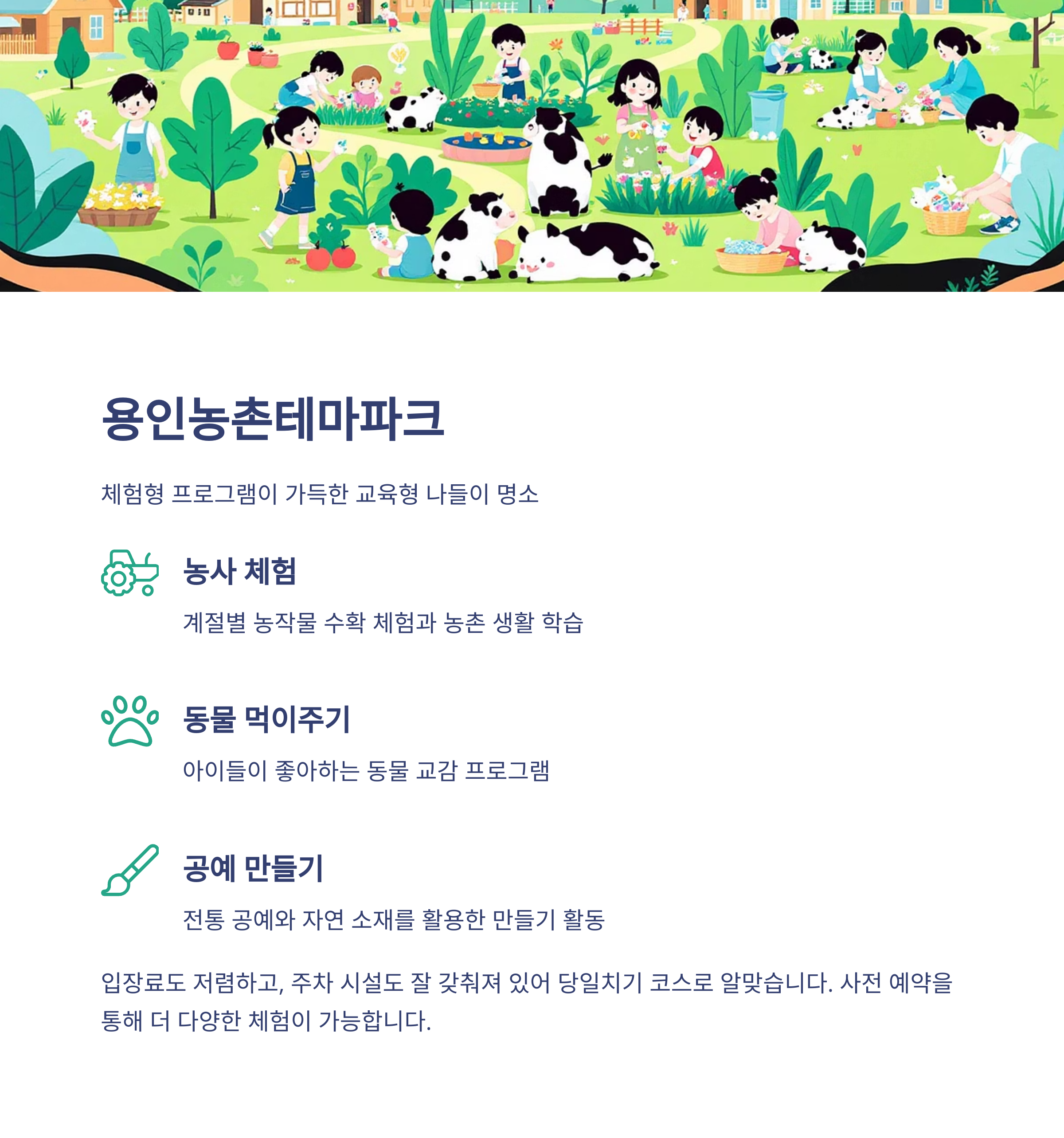 가족 단위 방문에 적합하며, 자연·체험·먹거리 모두 만족하는 장소 위주로 정리했습니다