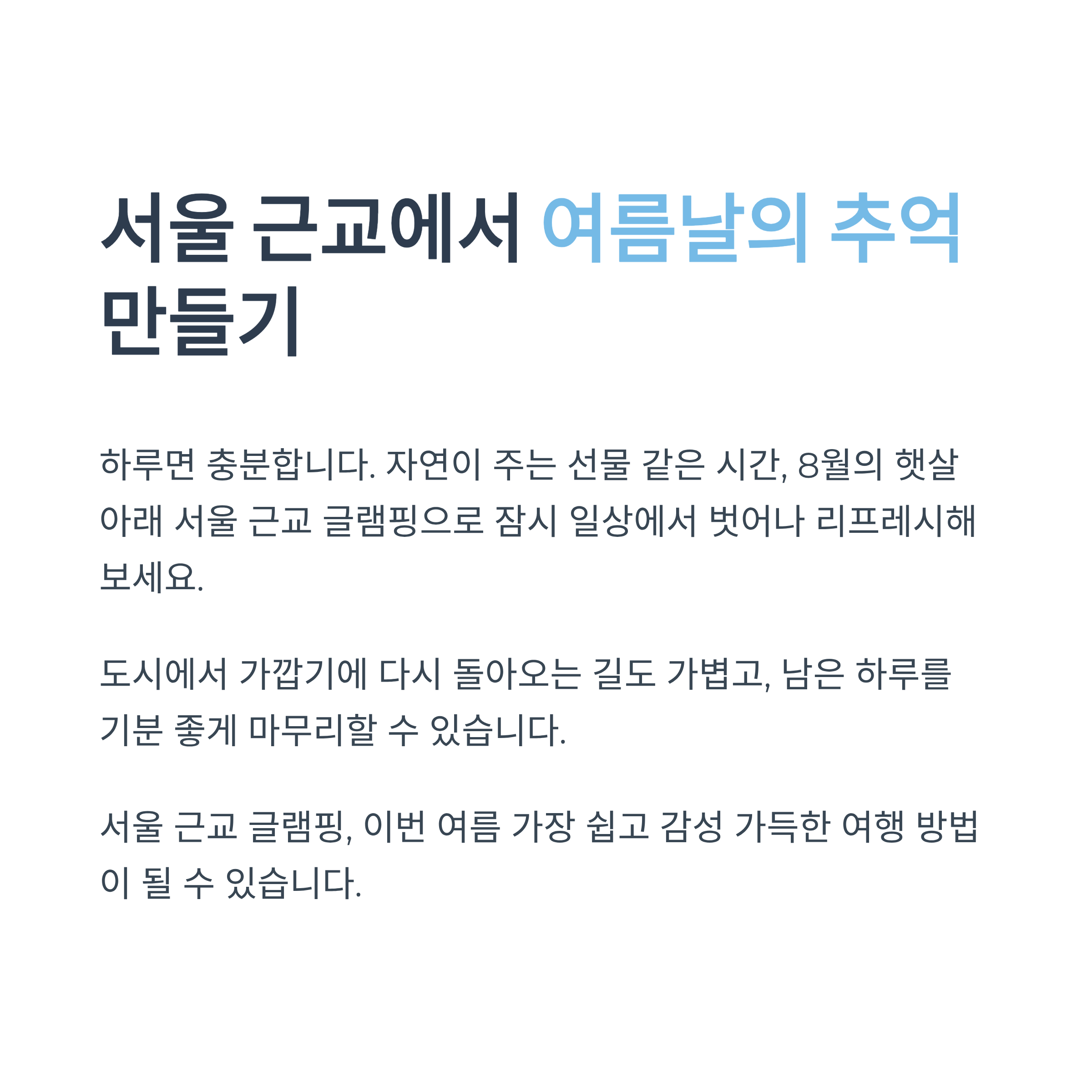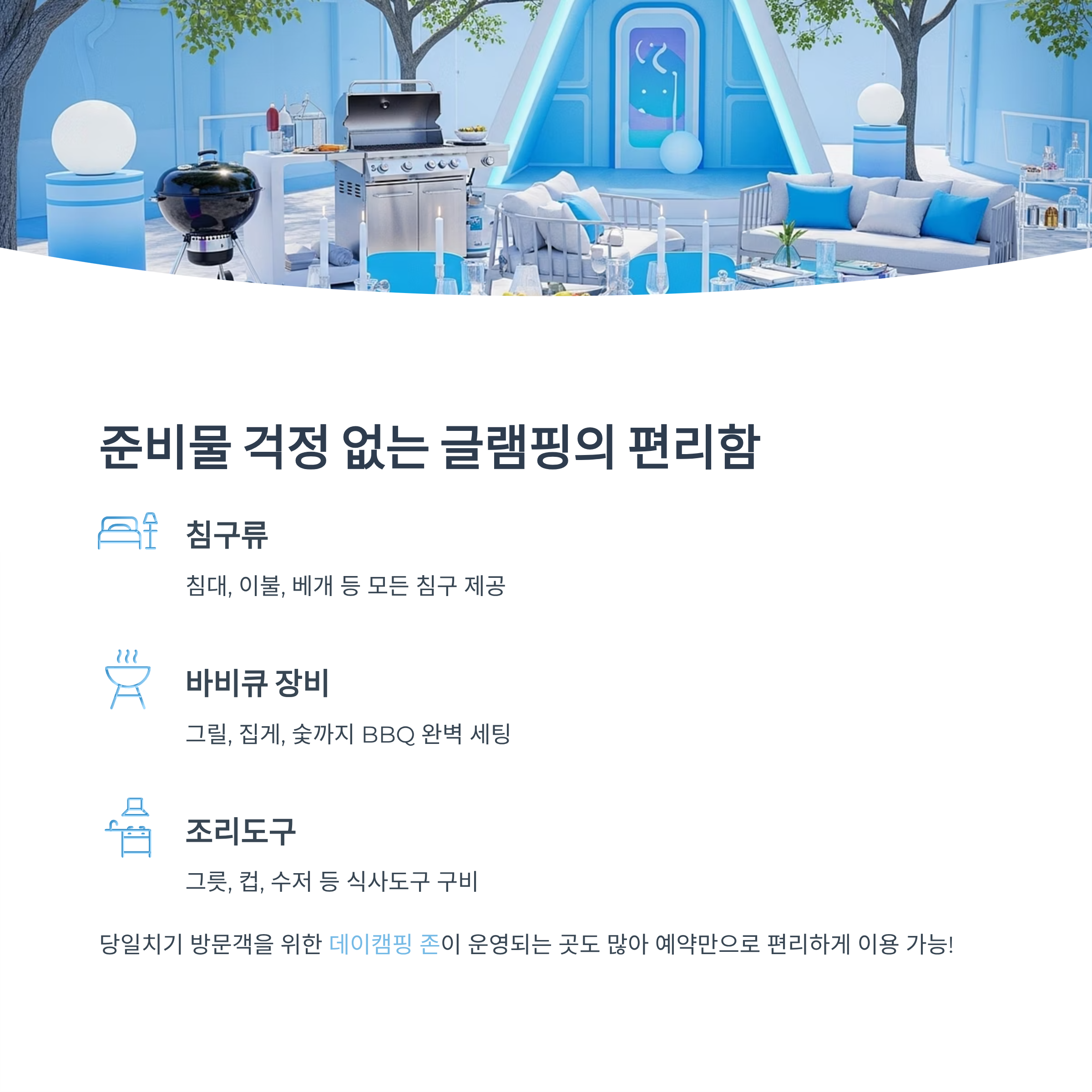 무더운 여름, 서울 근교에서 당일 글램핑으로 리프레시 해보셨나요?