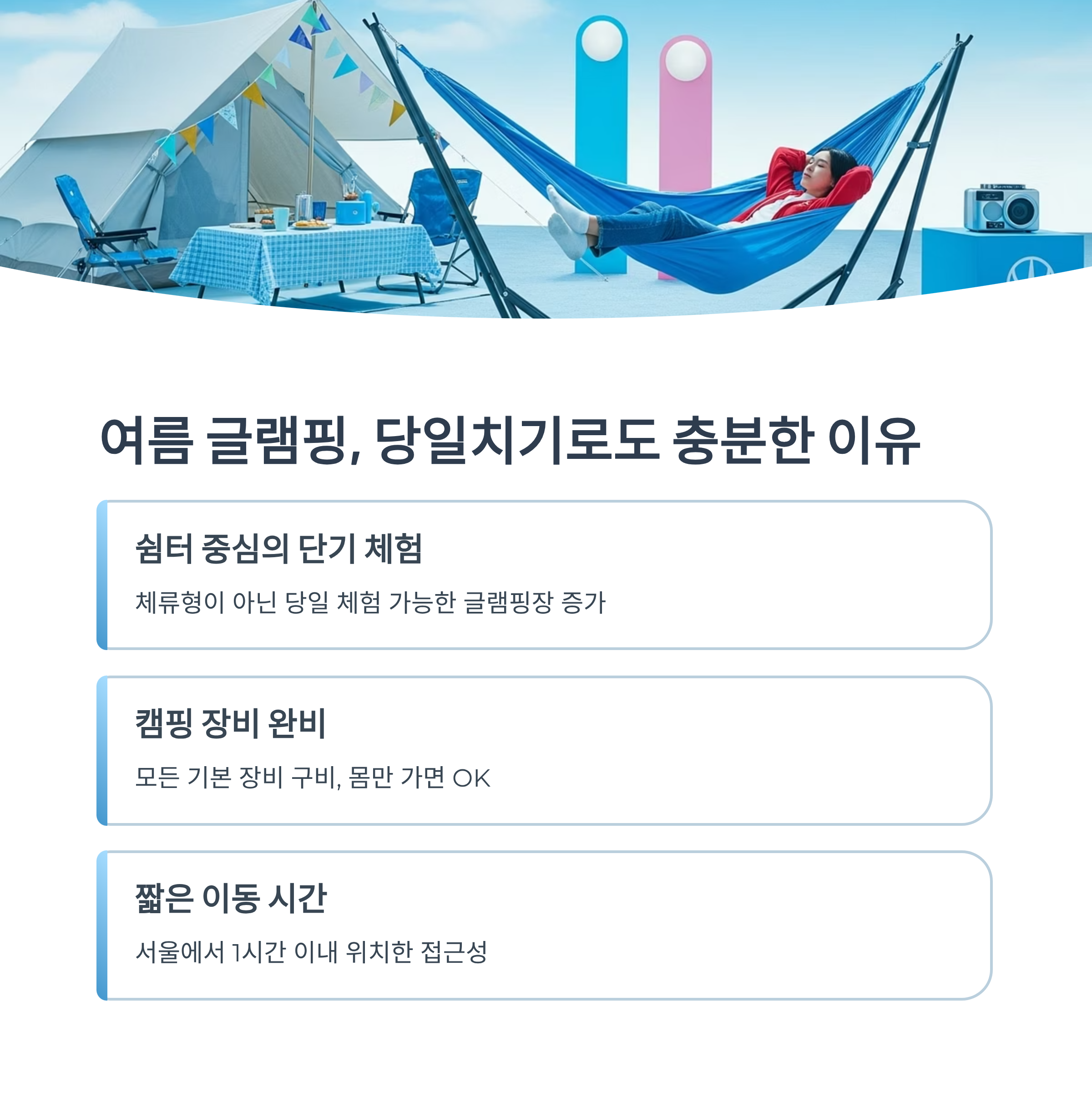 무더운 여름, 서울 근교에서 당일 글램핑으로 리프레시 해보셨나요?