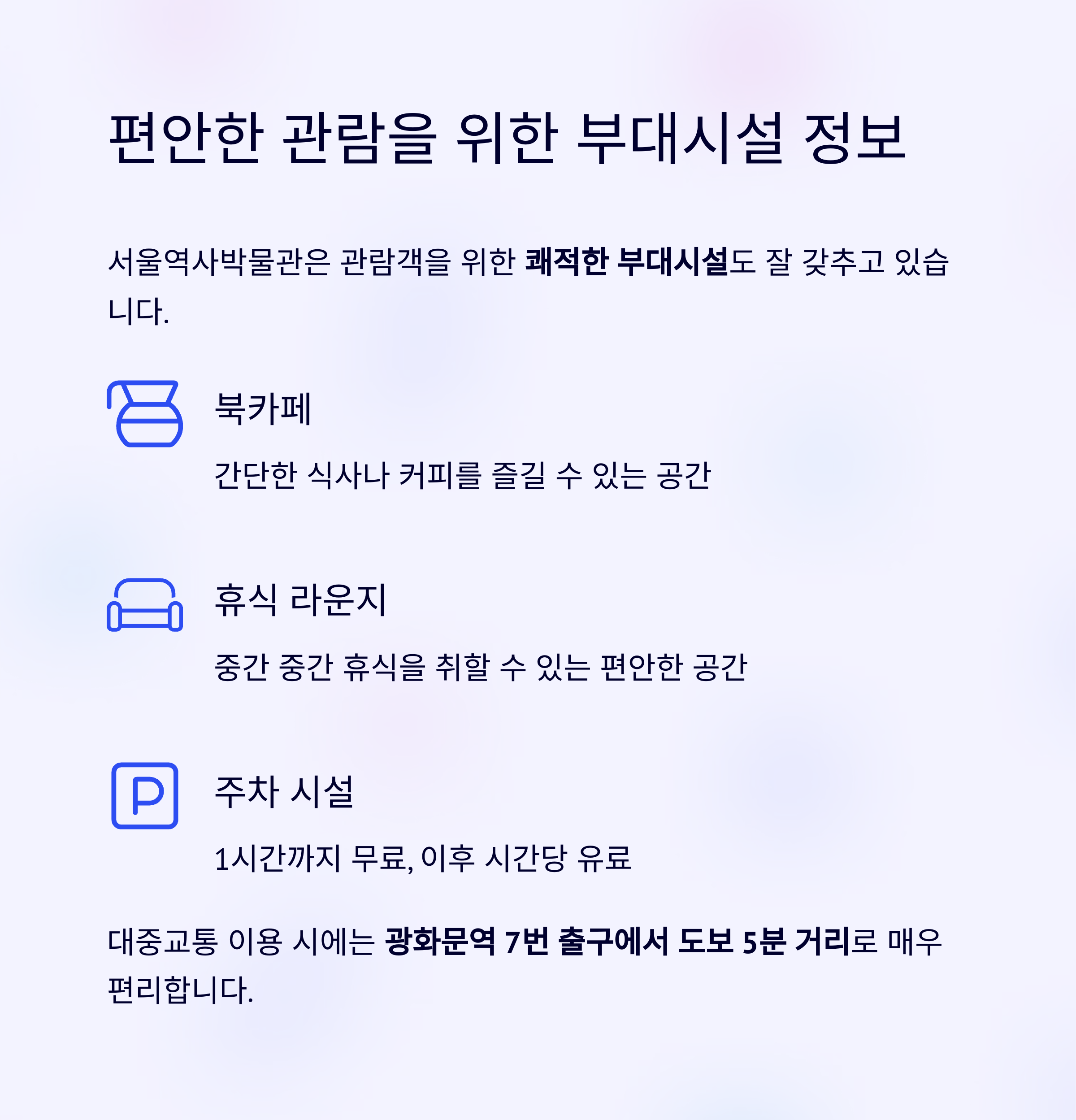 편안한 관람을 위한 부대시설 정보