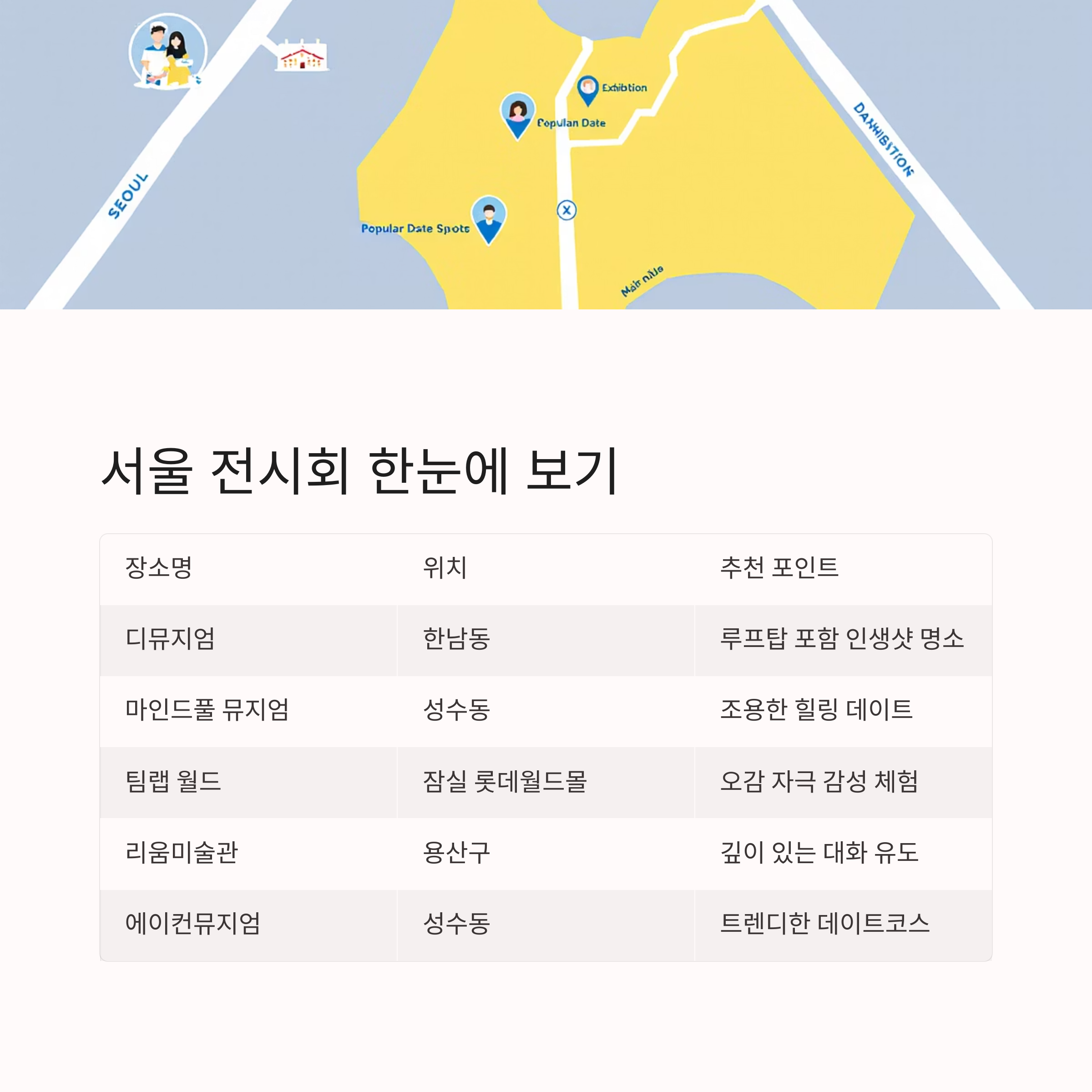 연인들이 자주 찾는 서울 전시회 장소는 어디일까?