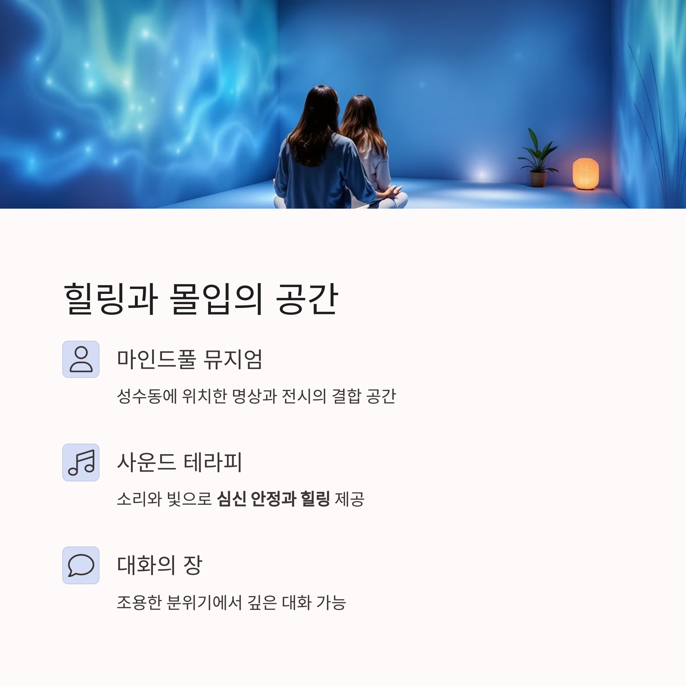 | 마인드풀 뮤지엄 | 힐링 중심 명상 콘텐츠 | 성수동 | 조용한 힐링 데이트 |