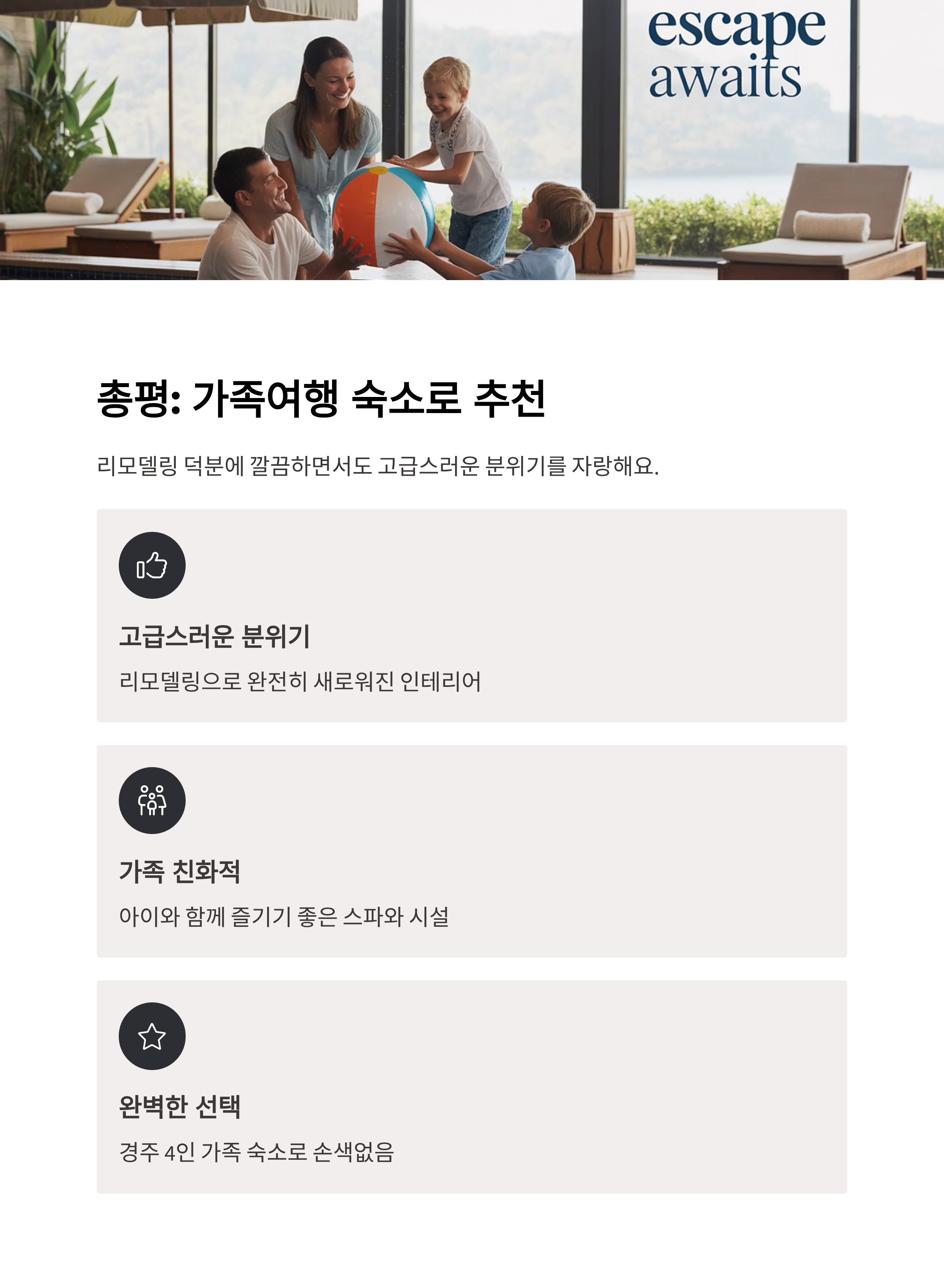 총평, 가족여행 숙소로 추천