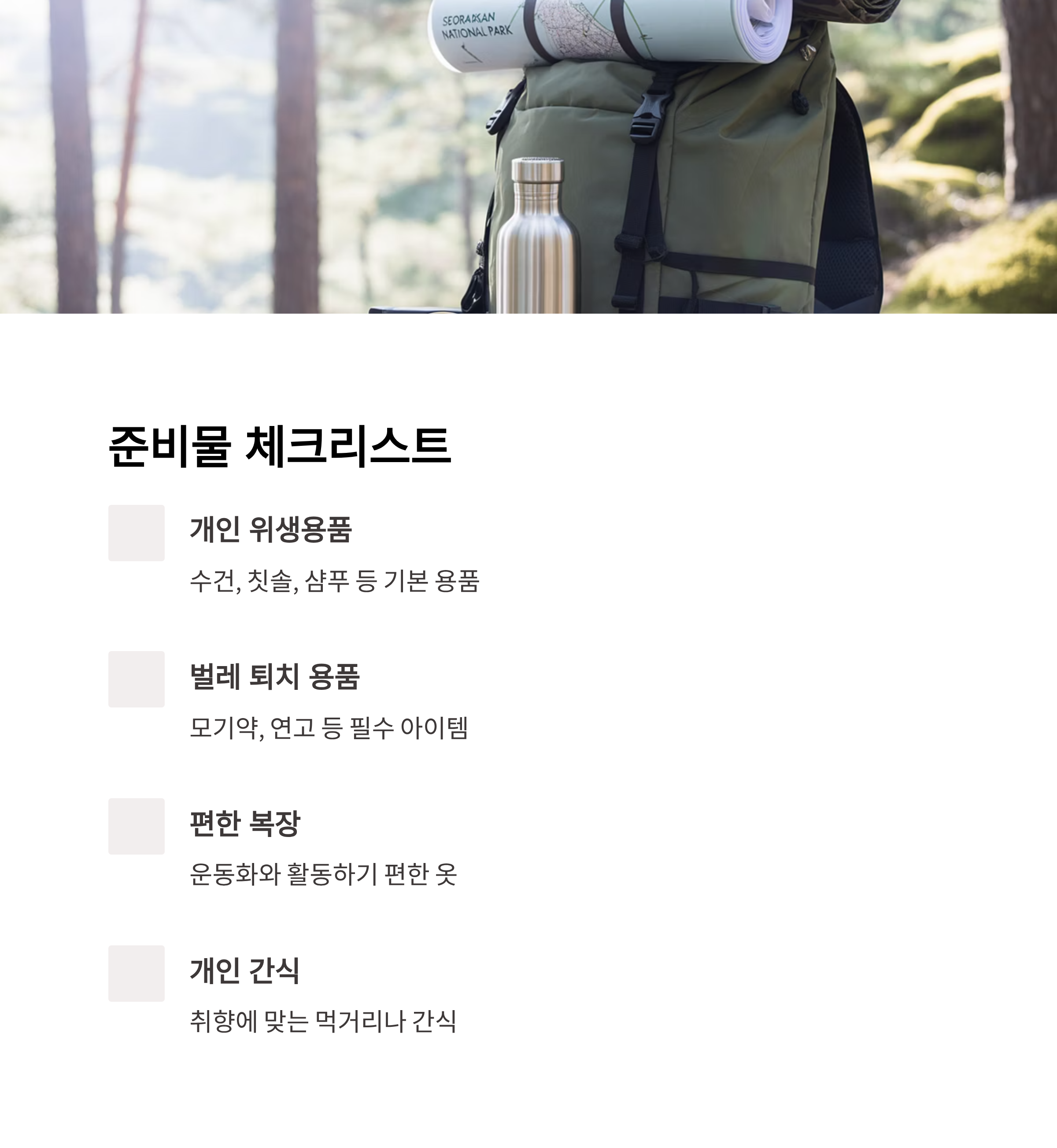 이것만 챙겨도 쾌적하게 머물 수 있습니다.