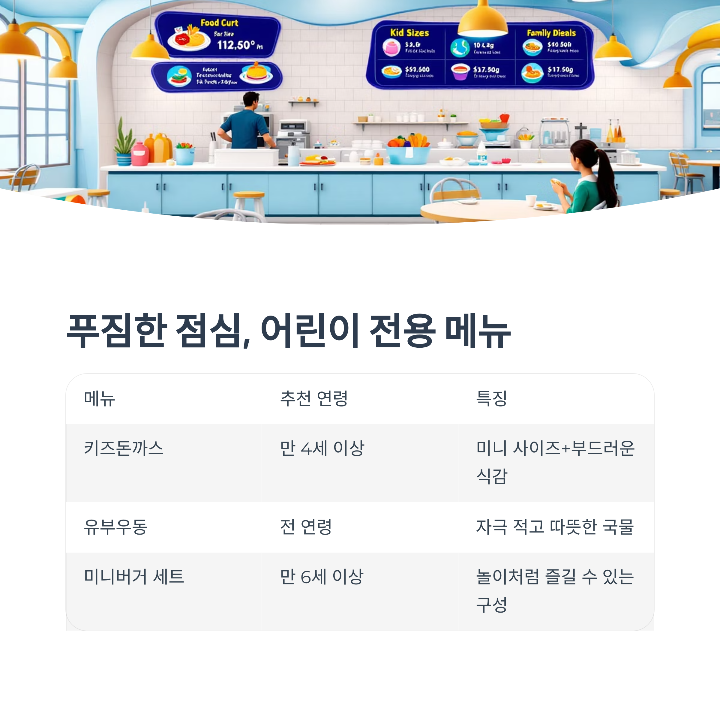 점심시간엔 푸짐하게! ‘푸드코트 어린이 전용 메뉴’