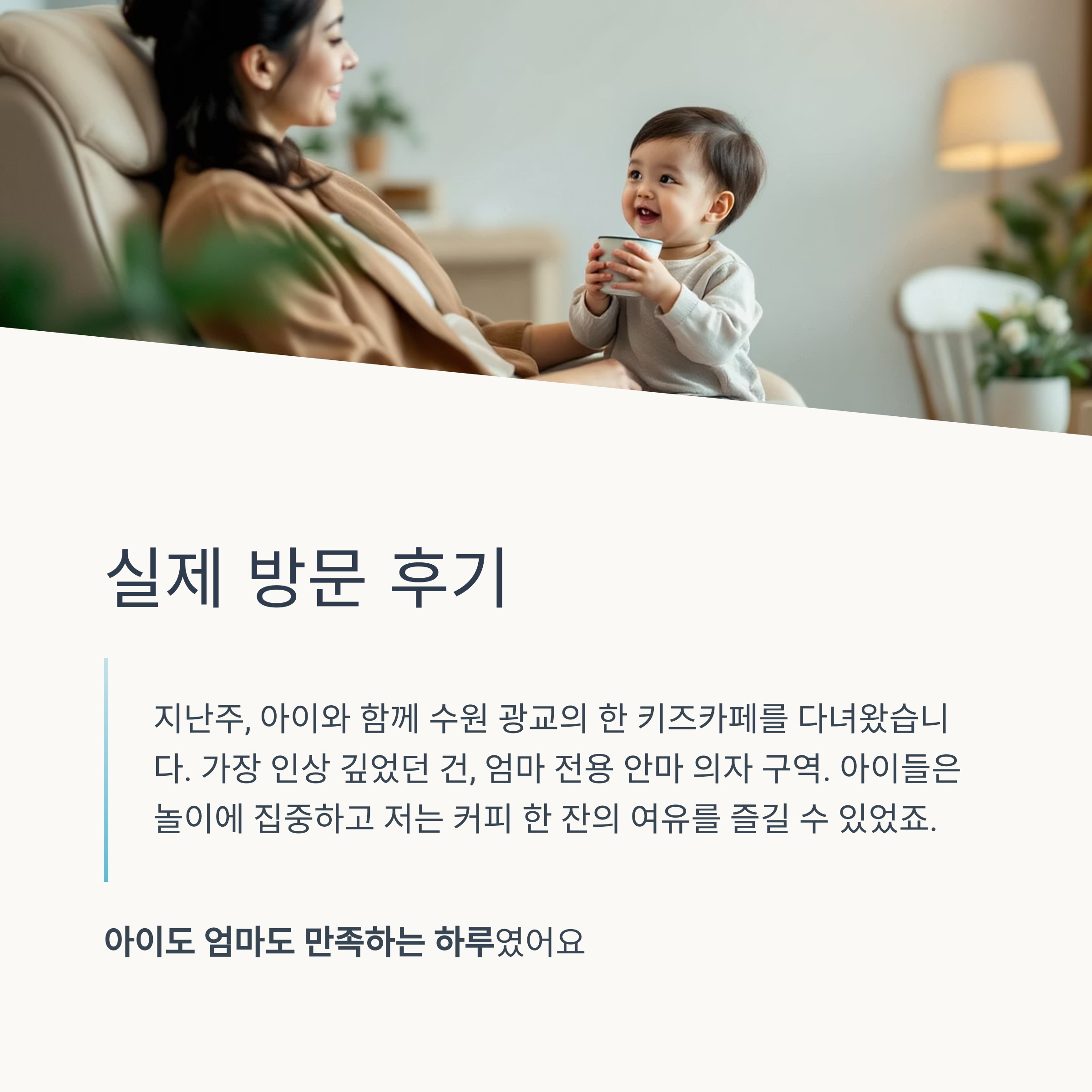 "지난주, 아이와 함께 수원 광교의 한 키즈카페를 다녀왔습니다.