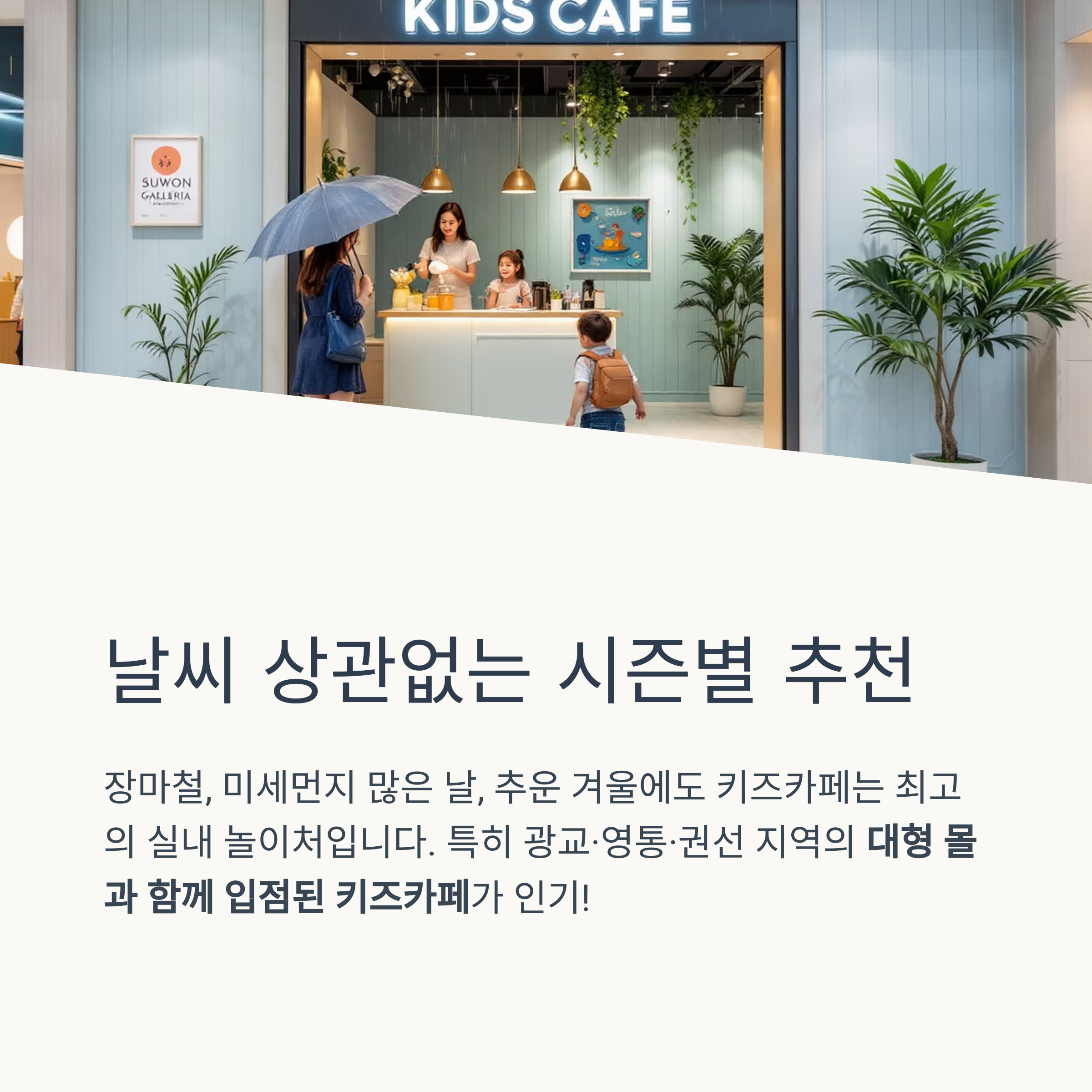 핵심: 날씨 상관없이 이동 동선 고려한 키즈카페가 계절별로 인기