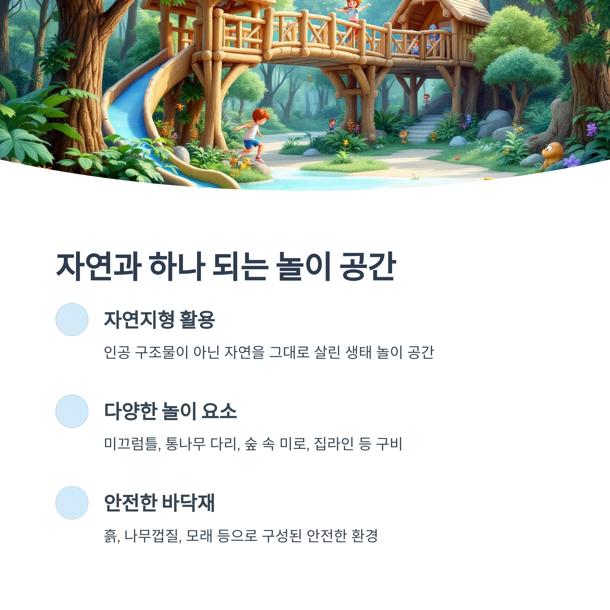 | 유아존 | 낮은 미끄럼틀, 나무 그네, 모래놀이장 | 만 2~5세 |
