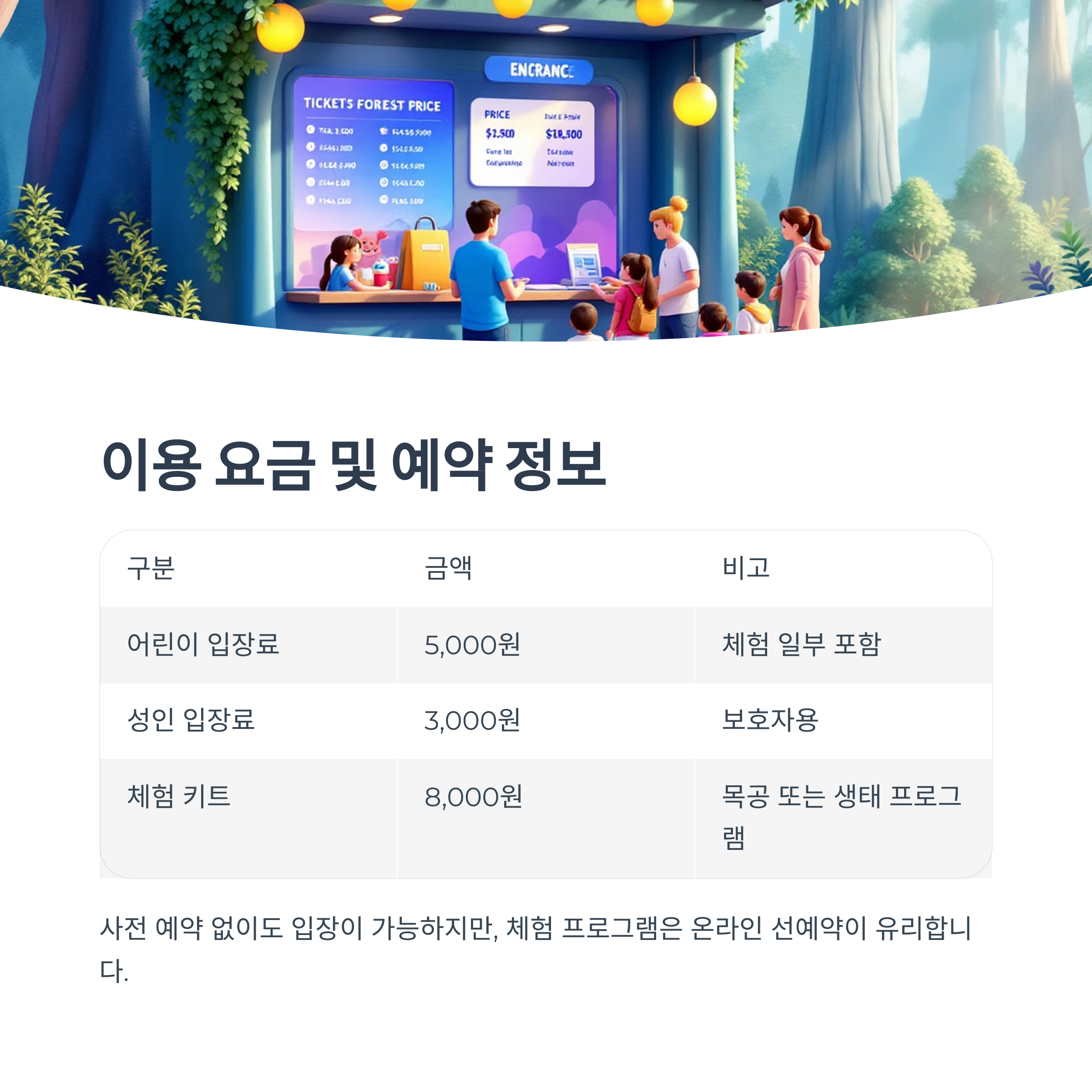 | 체험 키트 | 8,000원 | 목공 또는 생태 프로그램 선택 가능 |