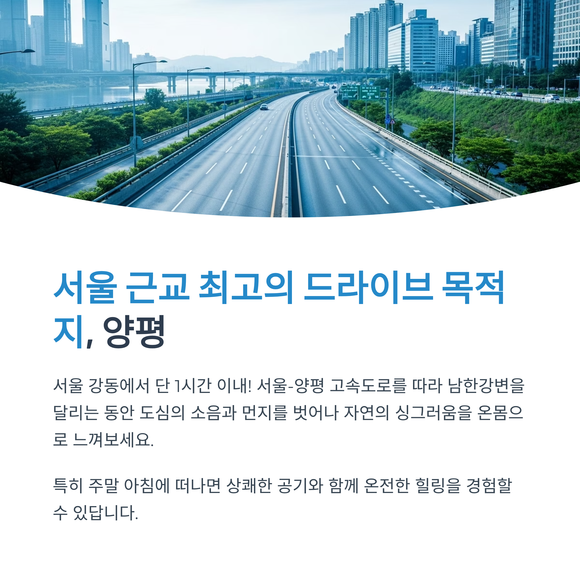 가장 가까운 자연 속 여행지입니다. 서울-양평 고속도로를 따라