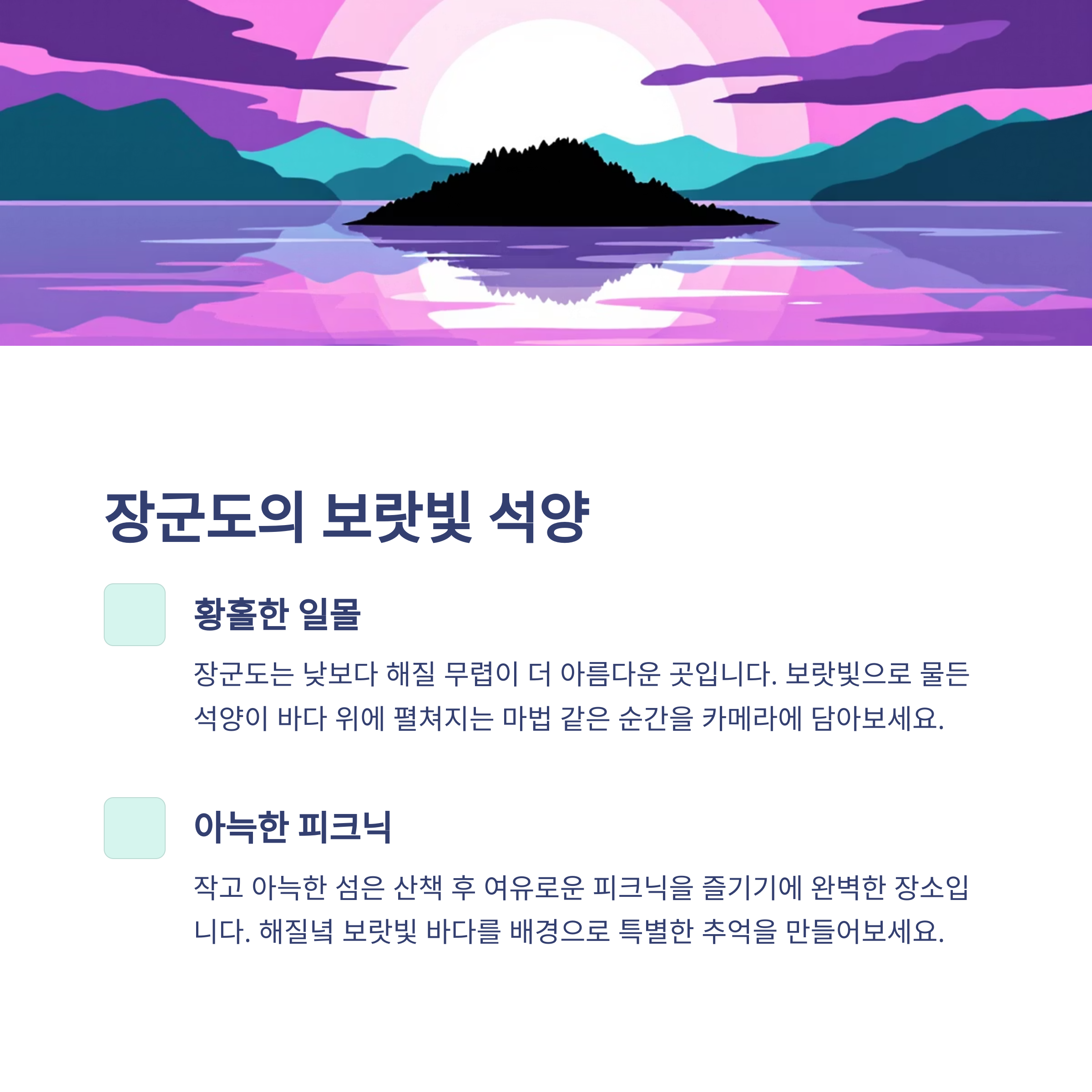 장군도는 낮보다 해질 무렵이 더 아름다운 곳입니다.