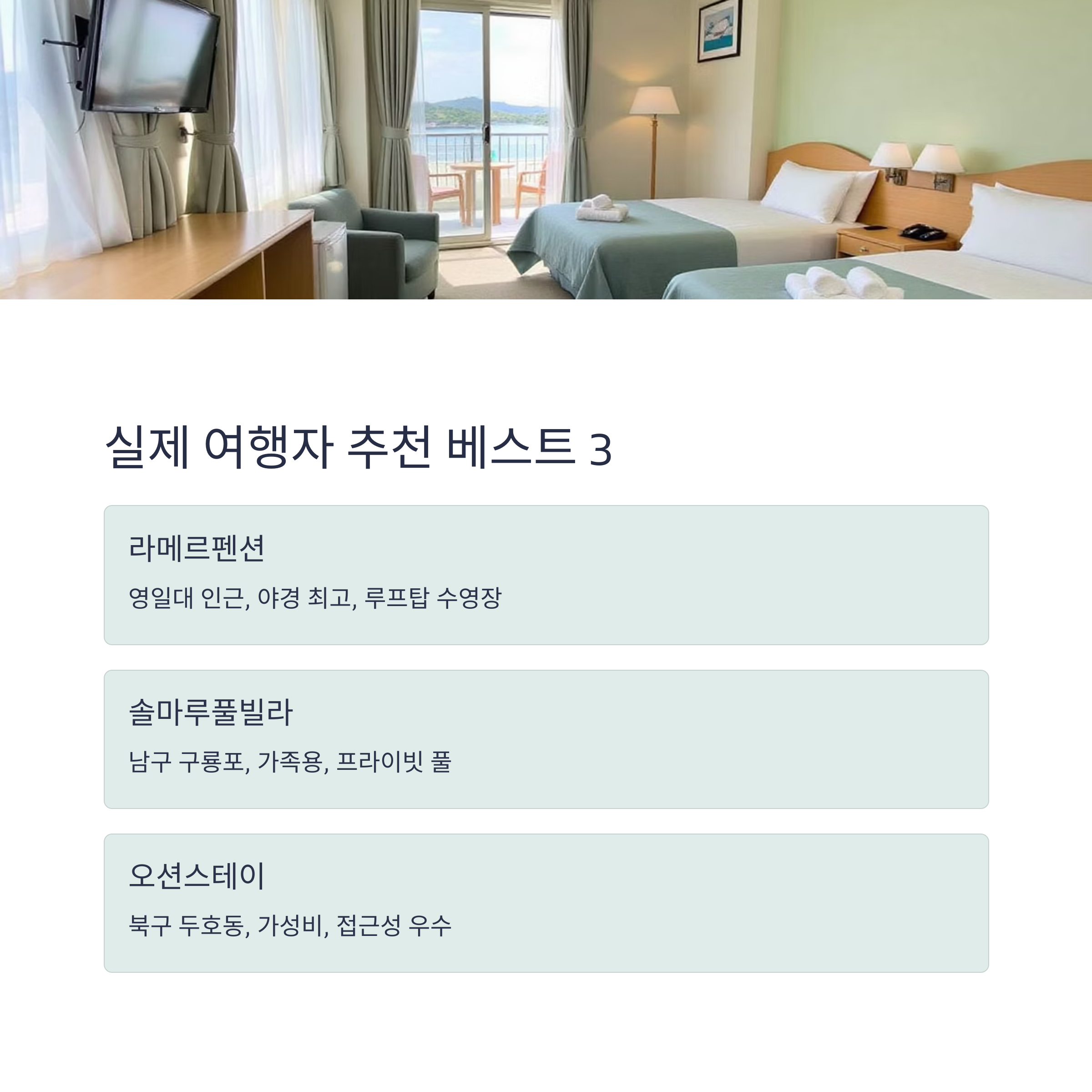 | 오션스테이 | 북구 두호동 | 가성비, 접근성 우수 |