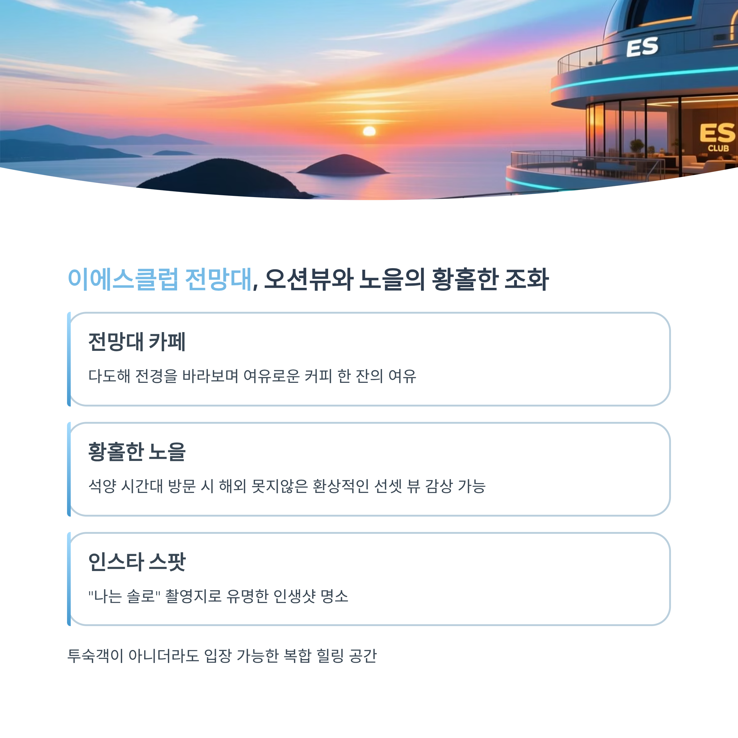 이에스클럽 전망대, 오션뷰와 노을의 황홀한 조화