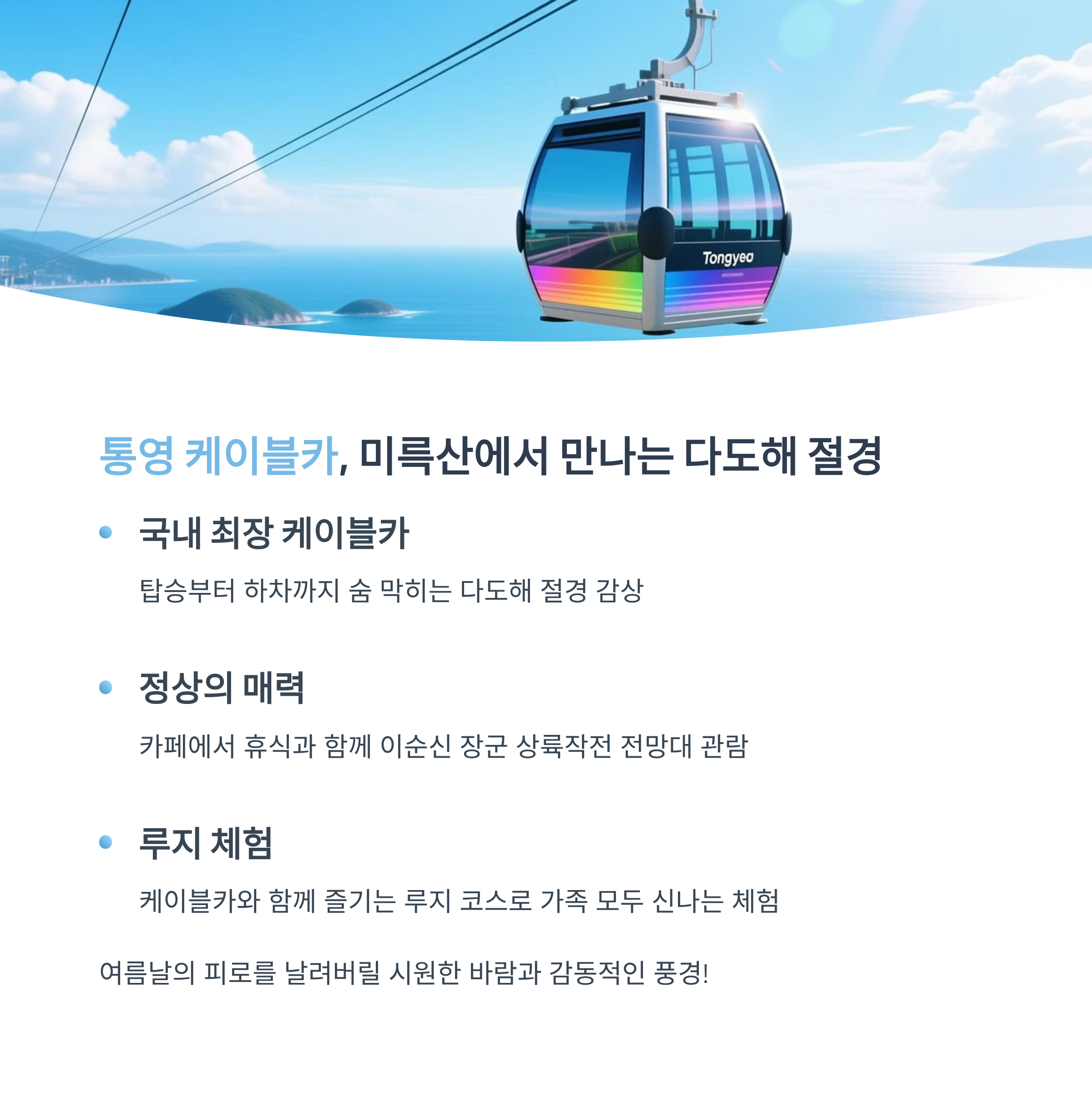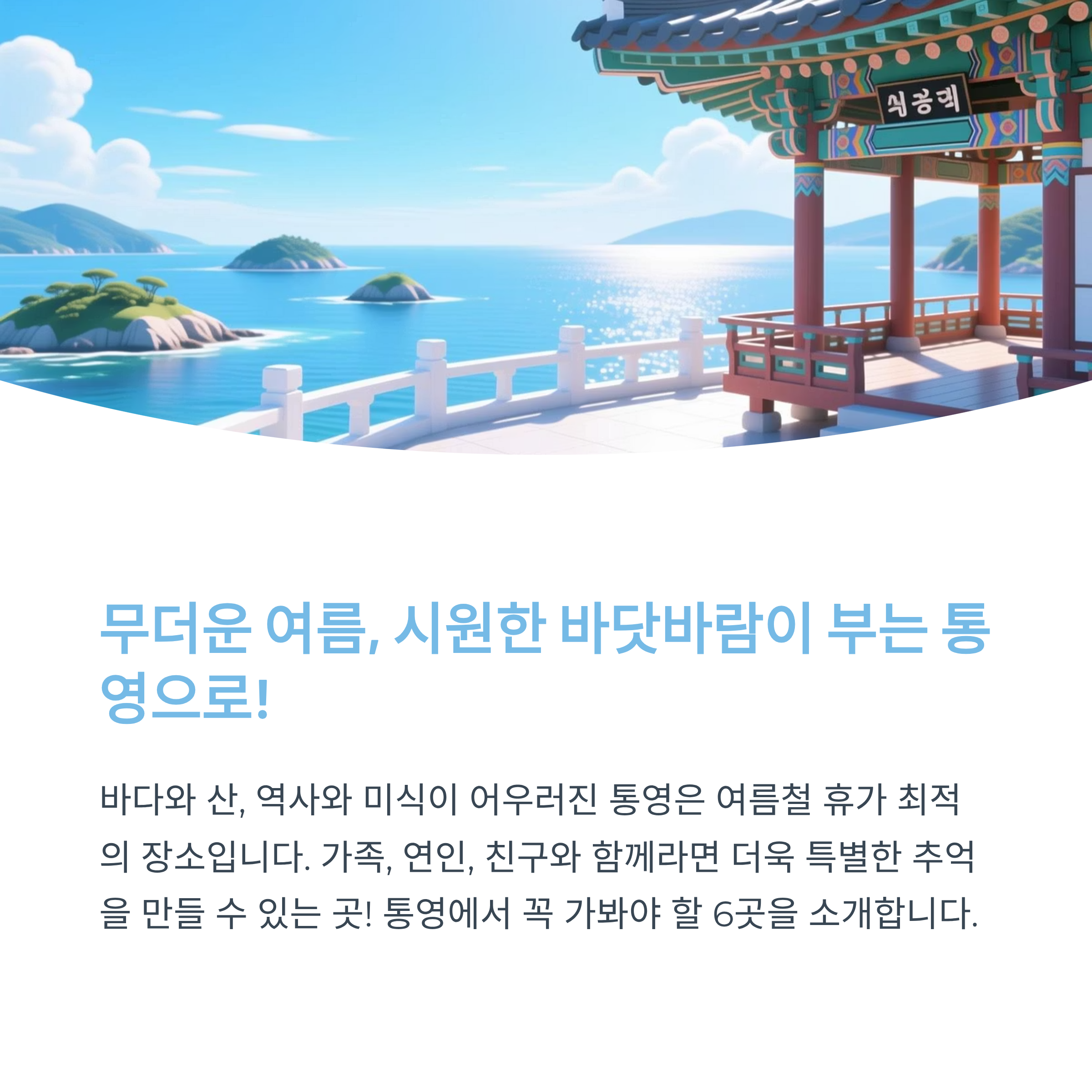 무더운 여름, 시원한 바닷바람과 함께 힐링할 수 있는 국내 여행지로 통영만큼 매력적인 곳도 드뭅니다. 바다와 산, 역사와 미식이 어우러진 통영은 여름철 휴가로 안성맞춤인데요. 오늘은 그중에서도 꼭 가봐야 할 통영 여행지 6곳을 선정해 소개드립니다. 가족, 연인, 친구 누구와 가도 만족할 여정을 약속드립니다.