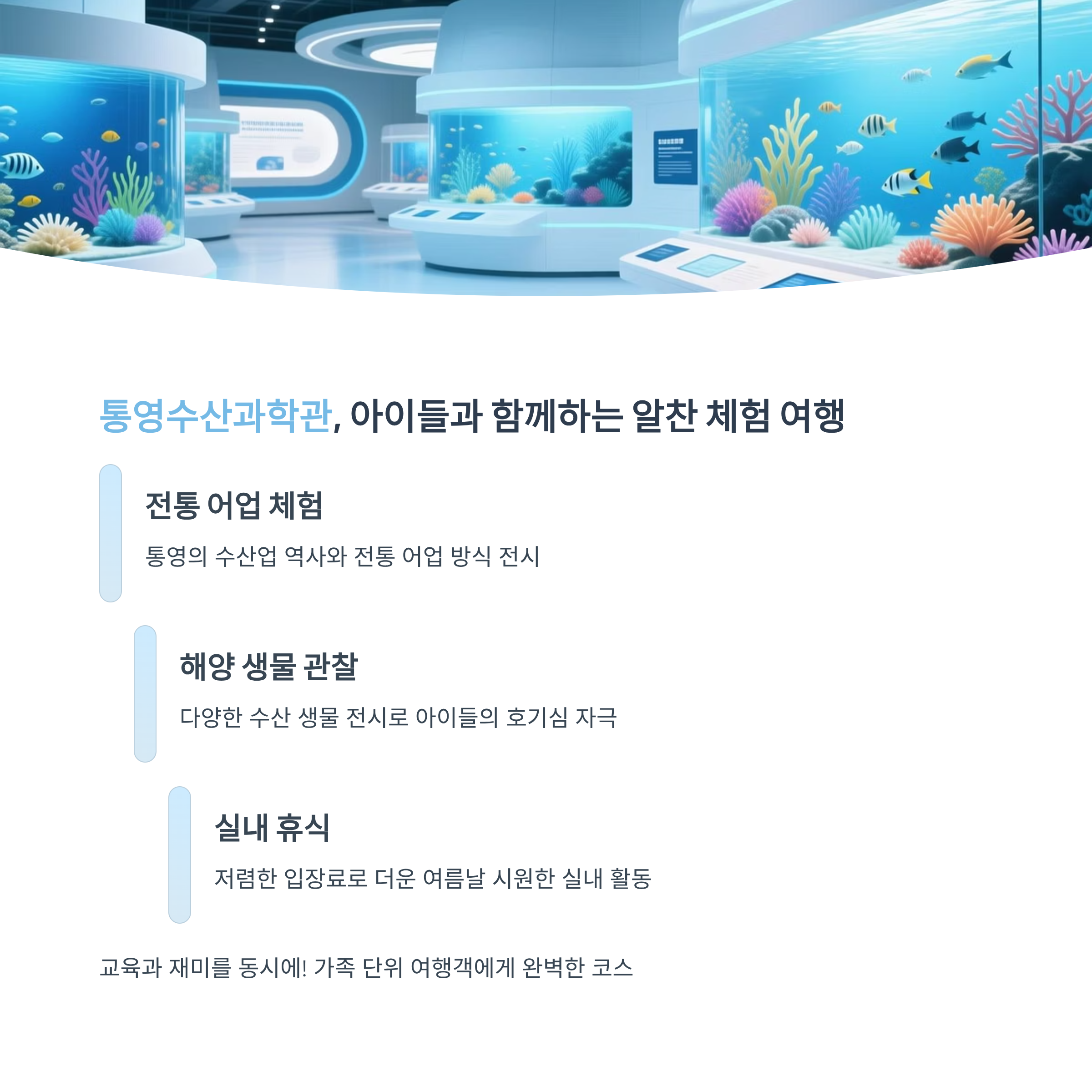 전통 어업 방식과 통영의 수산업 역사, 수산 생물 전시 등 다양한 콘텐츠를 통해