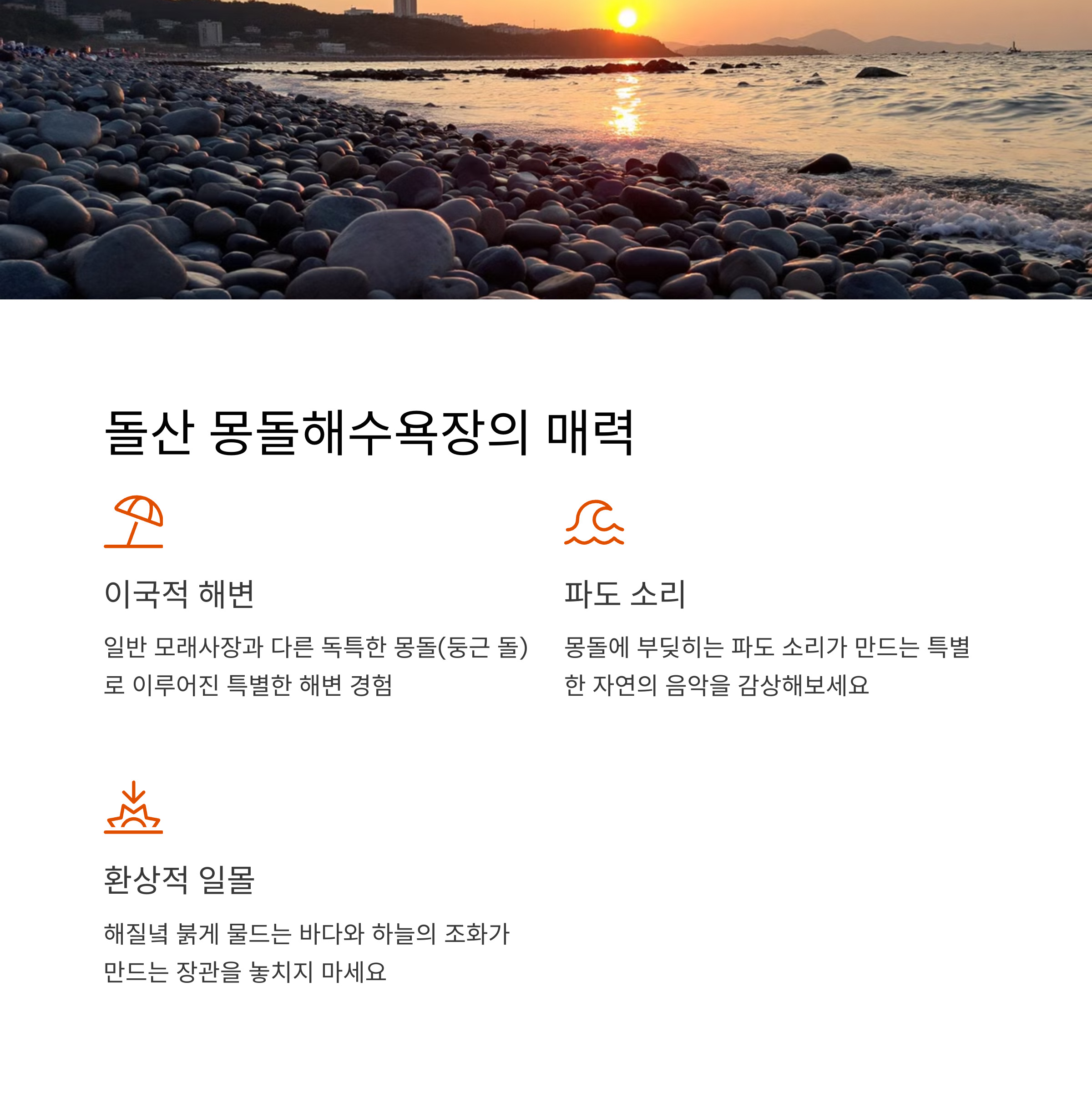 여수는 아름다운 해변과 맛있는 해산물, 낭만적인 야경이 어우러진 여행지입니다. 돌산 몽돌해수욕장에서 자연을 감상하고, 이순신광장과 게장골목에서 여수의 문화를 맛보며 특별한 여행을 즐겨보세요!