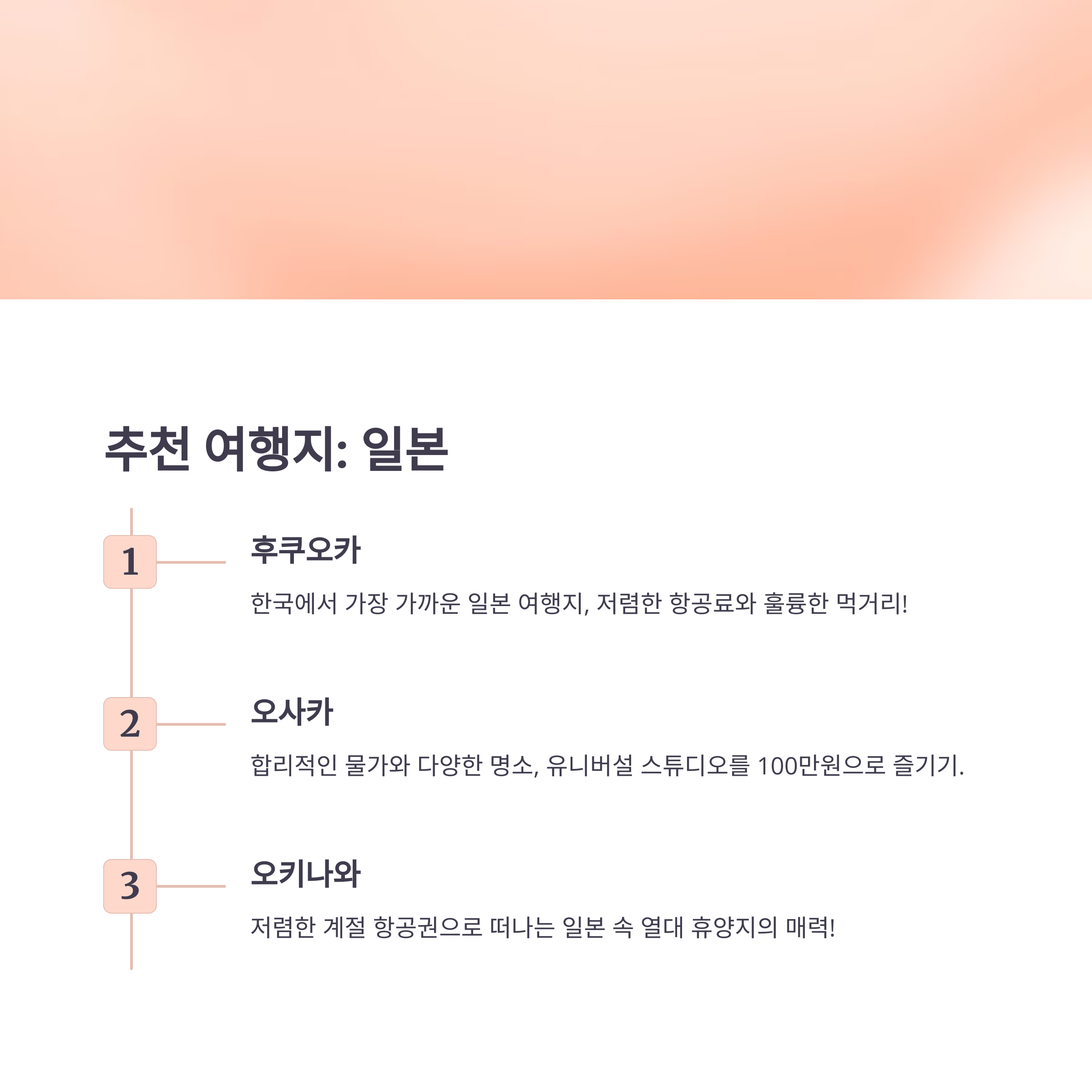 여러분이 다녀온 가성비 좋은 여행지가 있다면 공유해주세요! 저예산으로 다녀온 여행 팁도 함께 남겨주시면 많은 분들에게 큰 도움이 될 것입니다.