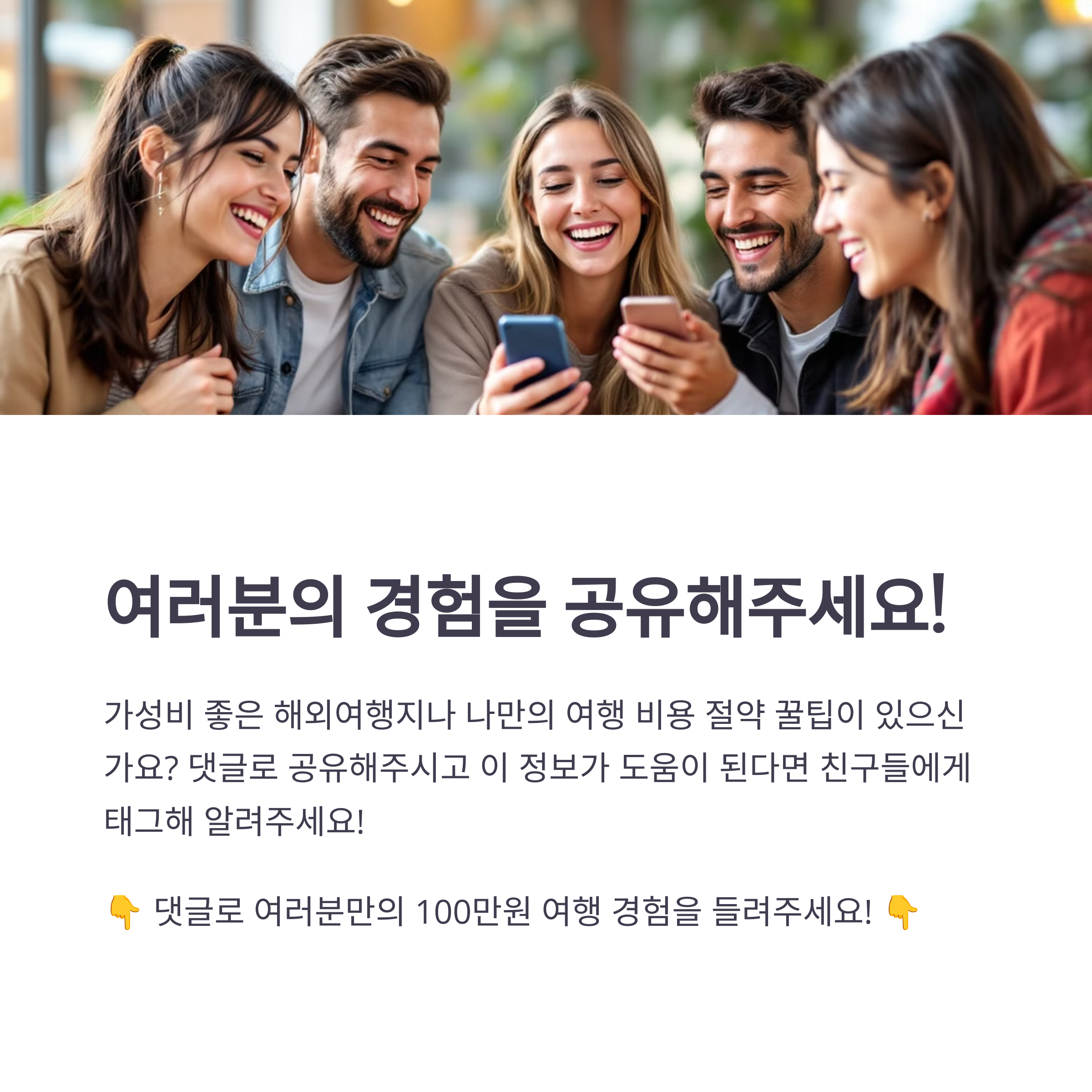 해외여행을 저렴하게 다녀오는 것은 충분히 가능합니다. 항공권을 스마트하게 예약하고, 가성비 좋은 숙소를 찾으며, 불필요한 지출을 줄이면 100만 원 이하의 예산으로도 만족스러운 여행을 즐길 수 있습니다. 지금부터라도 저예산 여행을 계획해 보세요!