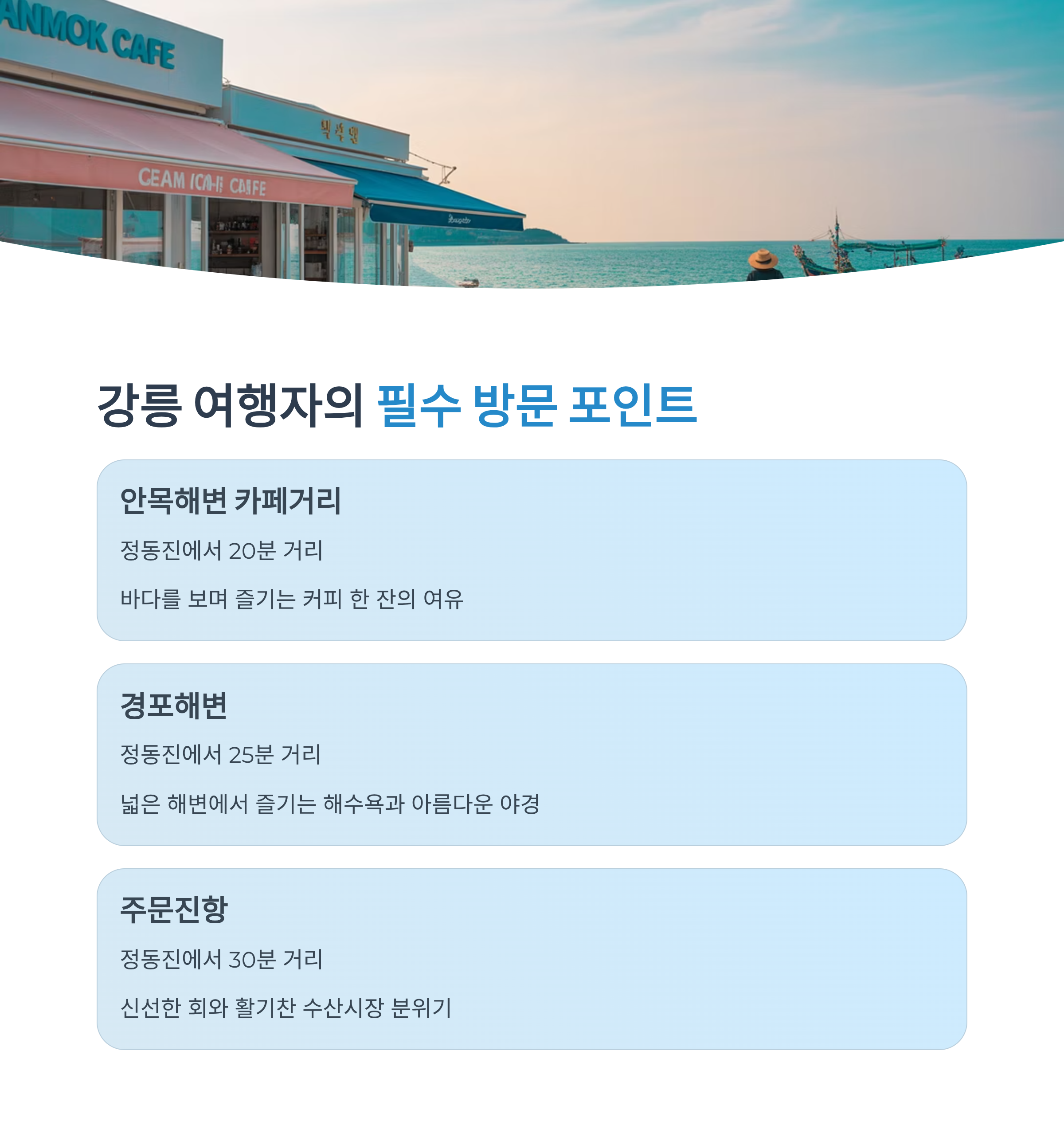 | 안목해변 | 카페거리 산책 | 차량 20분 내외 |