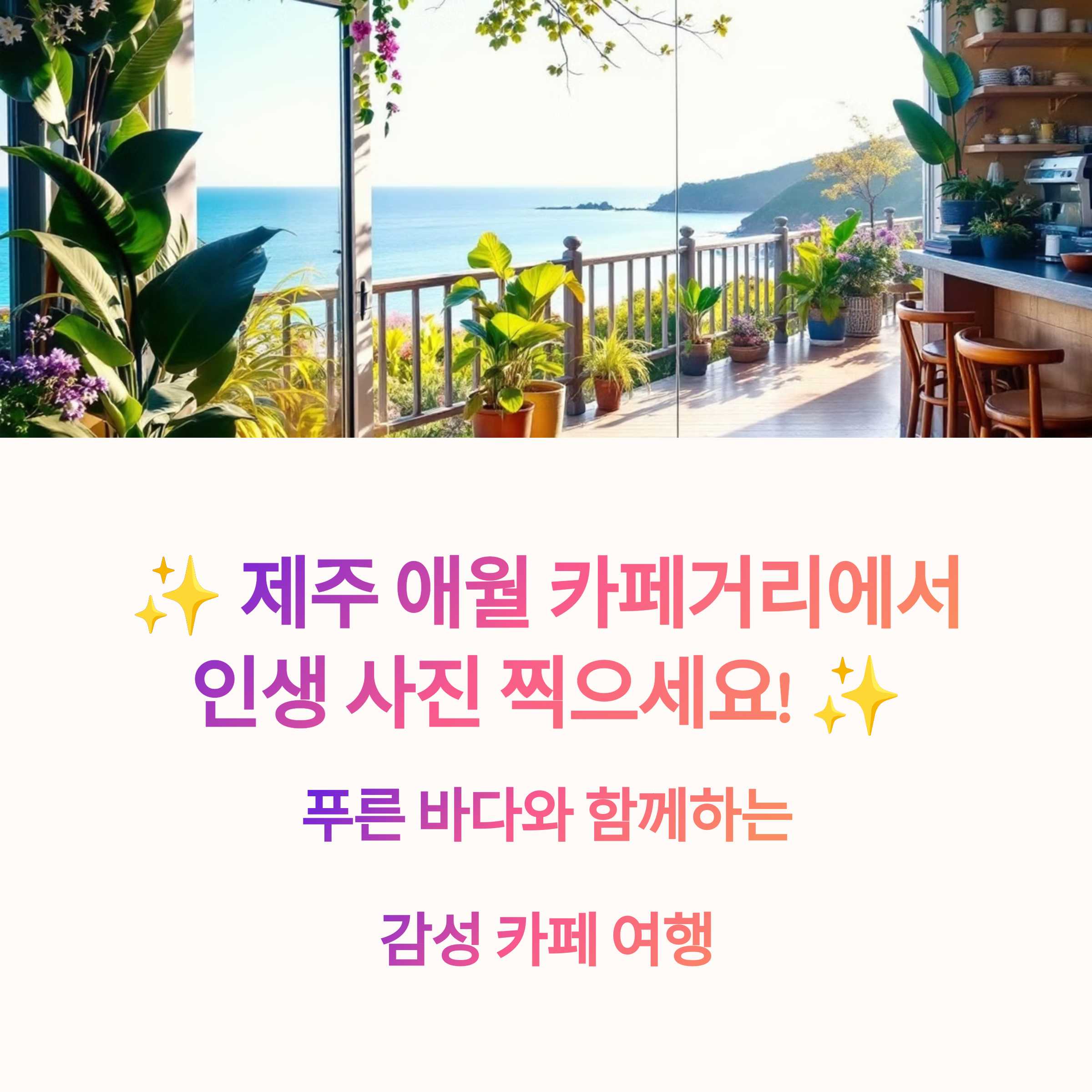 제주 애월 카페거리는 아름다운 바다 전망과 감성적인 분위기가 어우러진 최고의 힐링 공간입니다. 여러분도 제주에서 여유롭게 커피 한 잔하며 멋진 시간을 보내보세요!